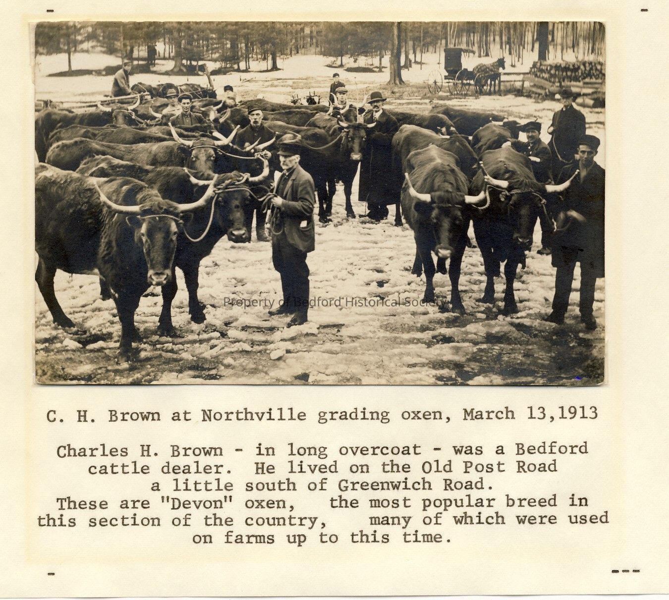Postcard of men with cattle. Charles H. Brown, Cattle Dealer. Written message on the back.