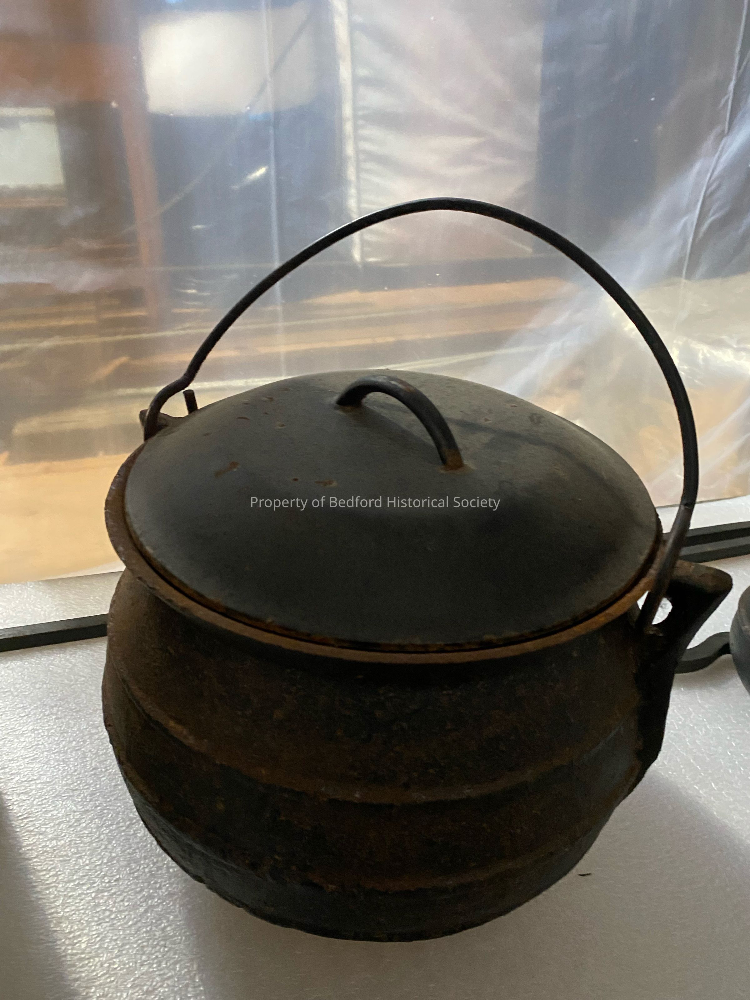 Large cast iron cooking pot with lid, c. 18th century