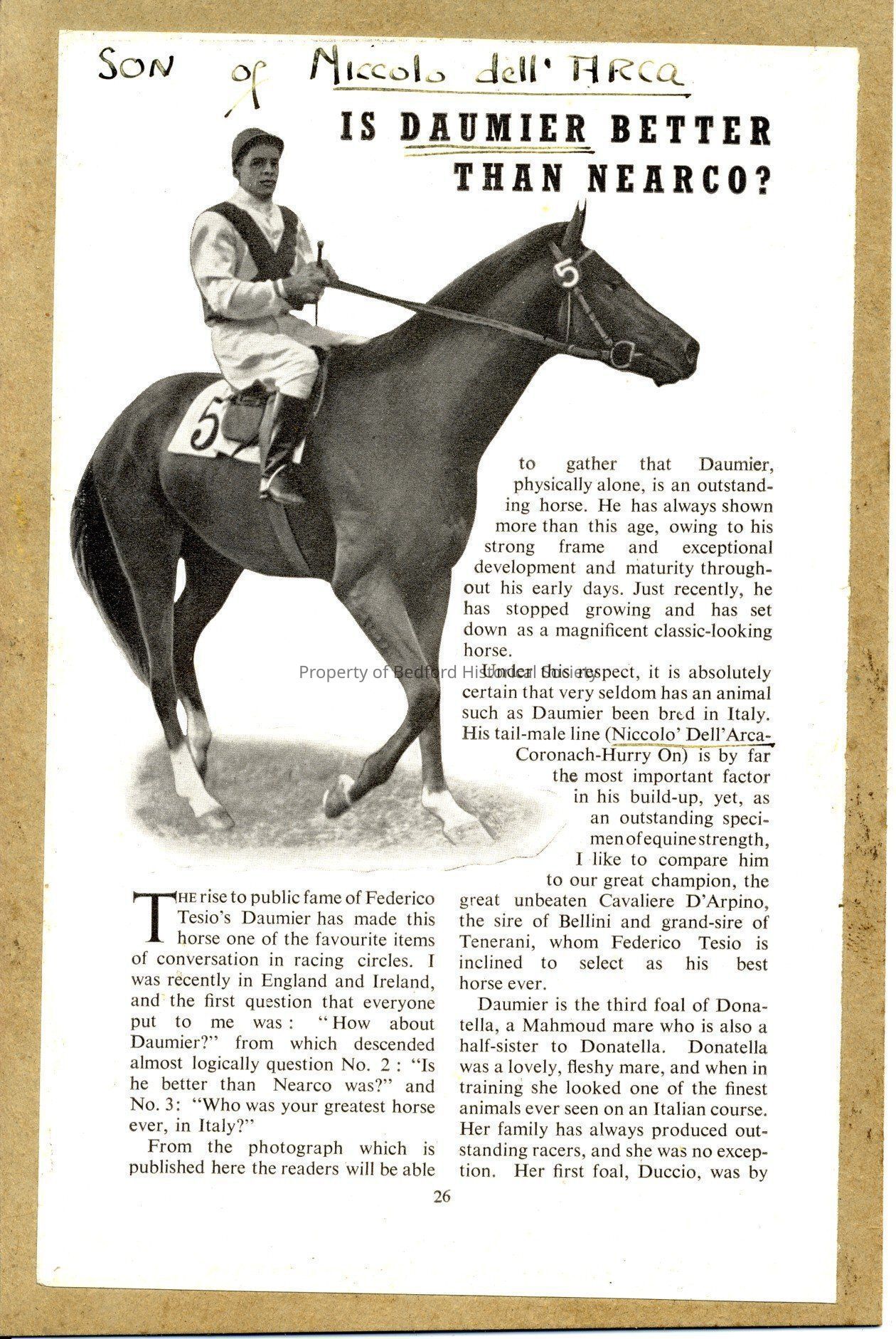 Horse article on Daumie. Written note: Son of Niccolo dell' Arca.