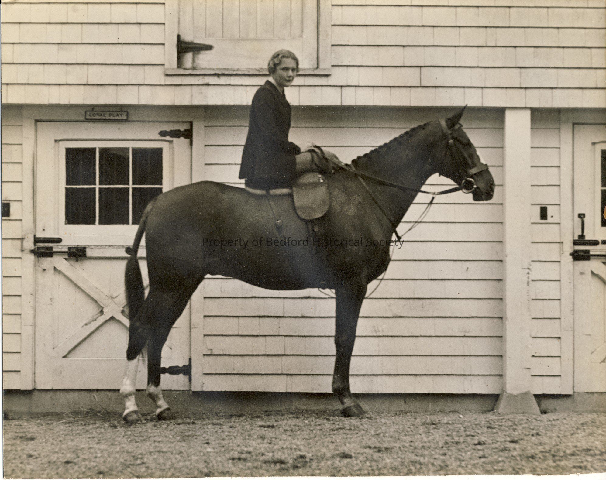Wilhelmine Kirby Waller infront of the barn, side Saddle.