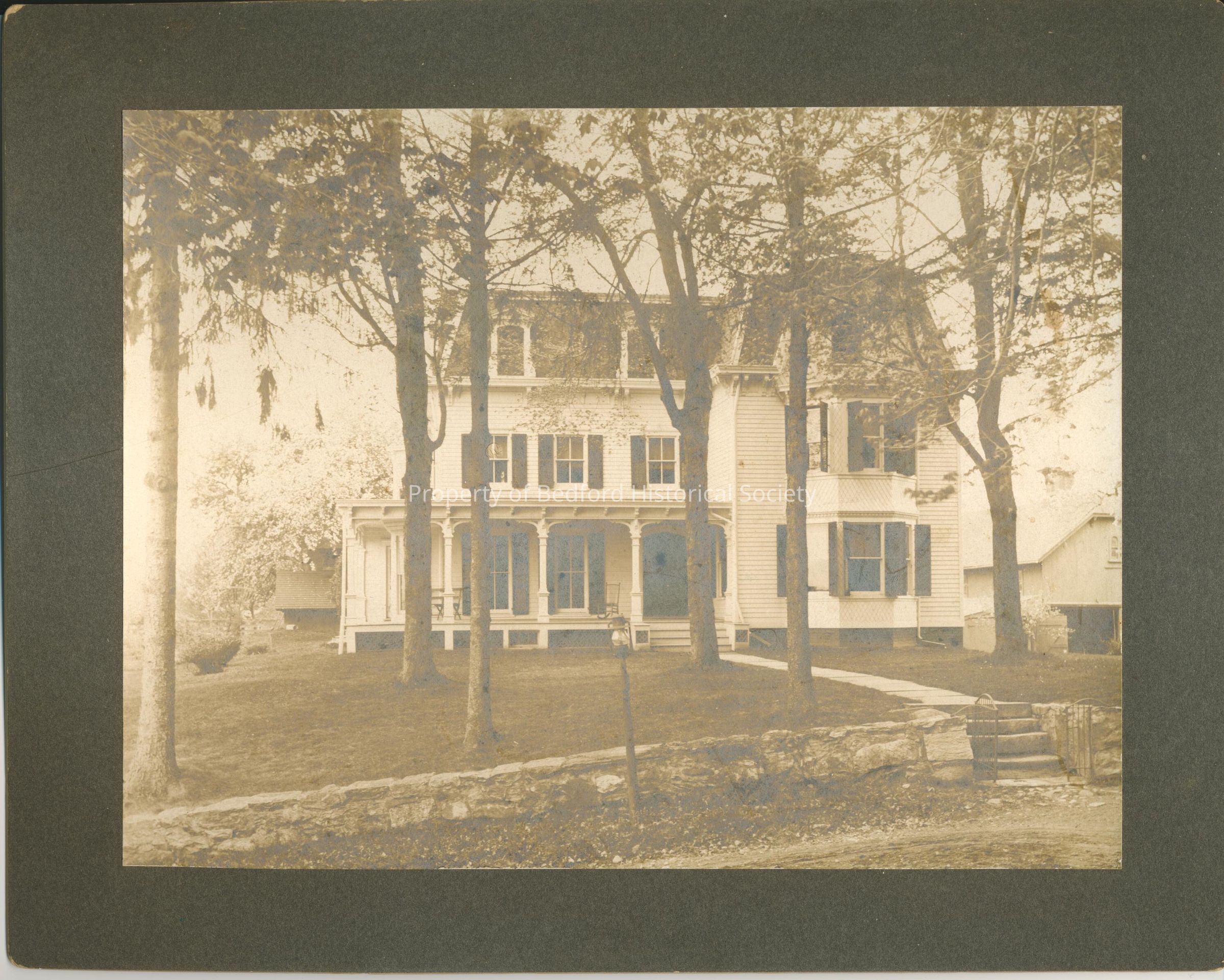 photograph mounted on dark grey board. Handwritten inscription on back reads: "Clark home -- crossover. Guard Hill + Clark Rd. Bedford, N.Y."