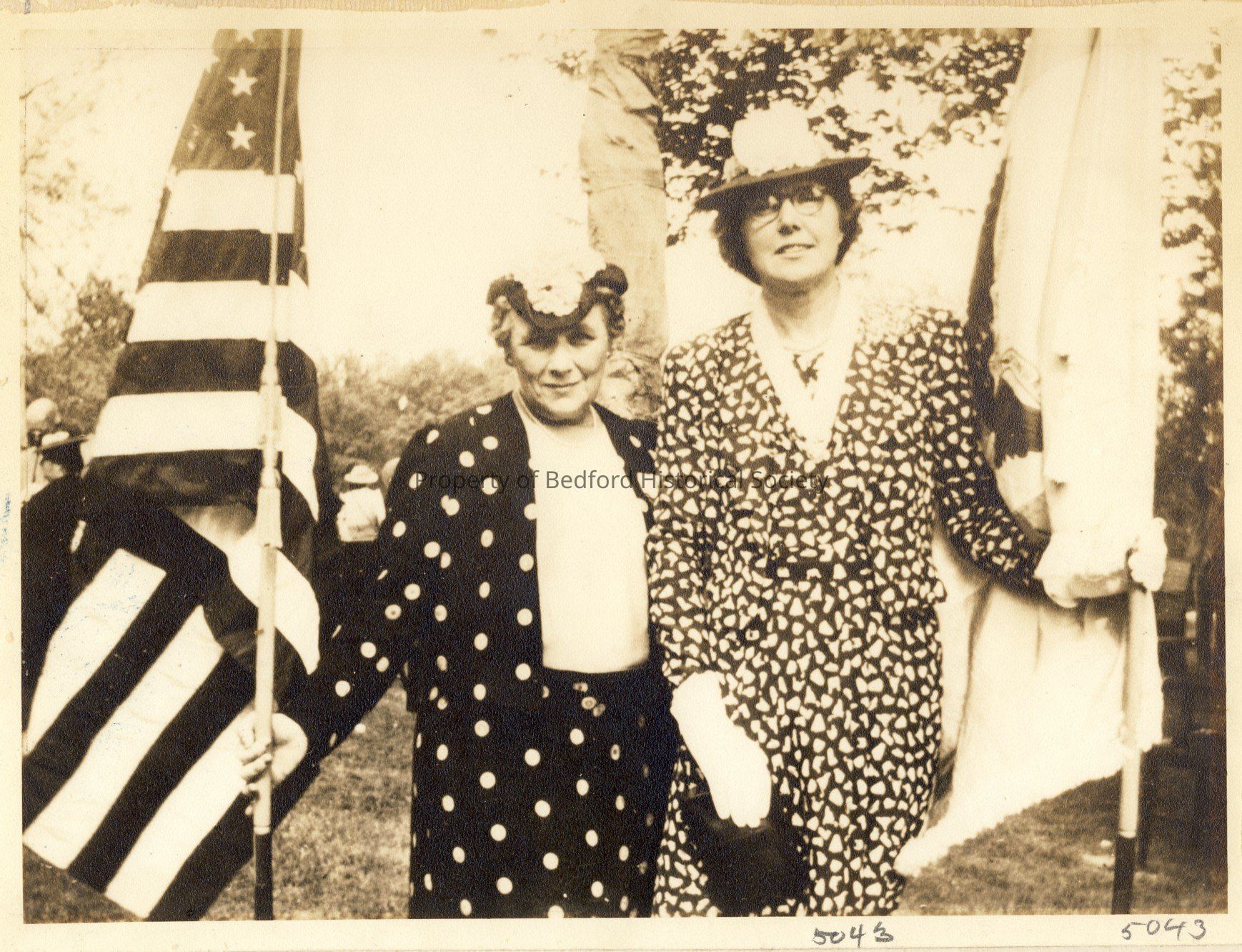 Two ladies with a flag. Frame backing says, "(3) Next to widow"