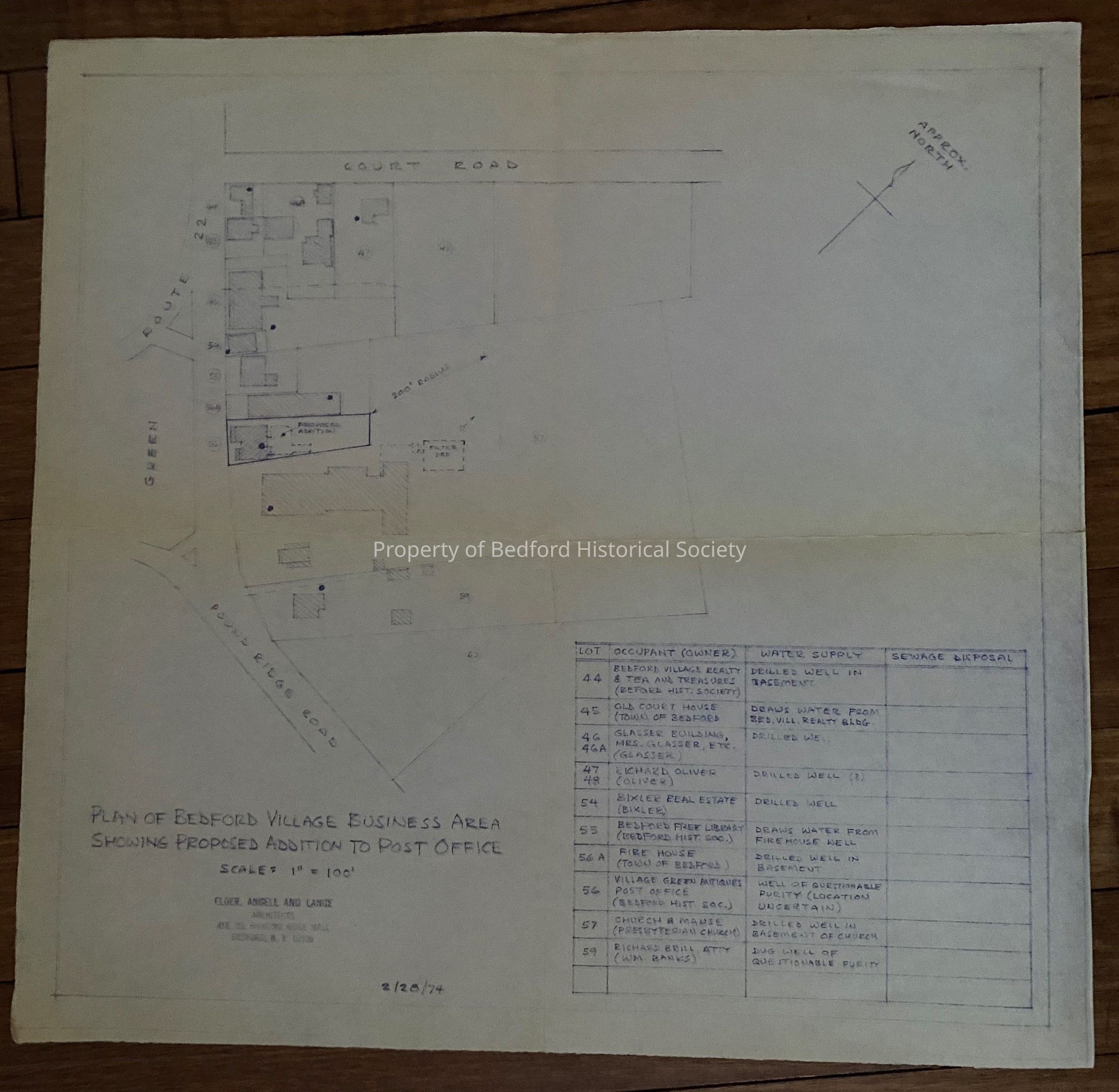 Plans and blueprints for Bedford Post Office Renovation by Elder, Angell & Lane Associates, 1974
