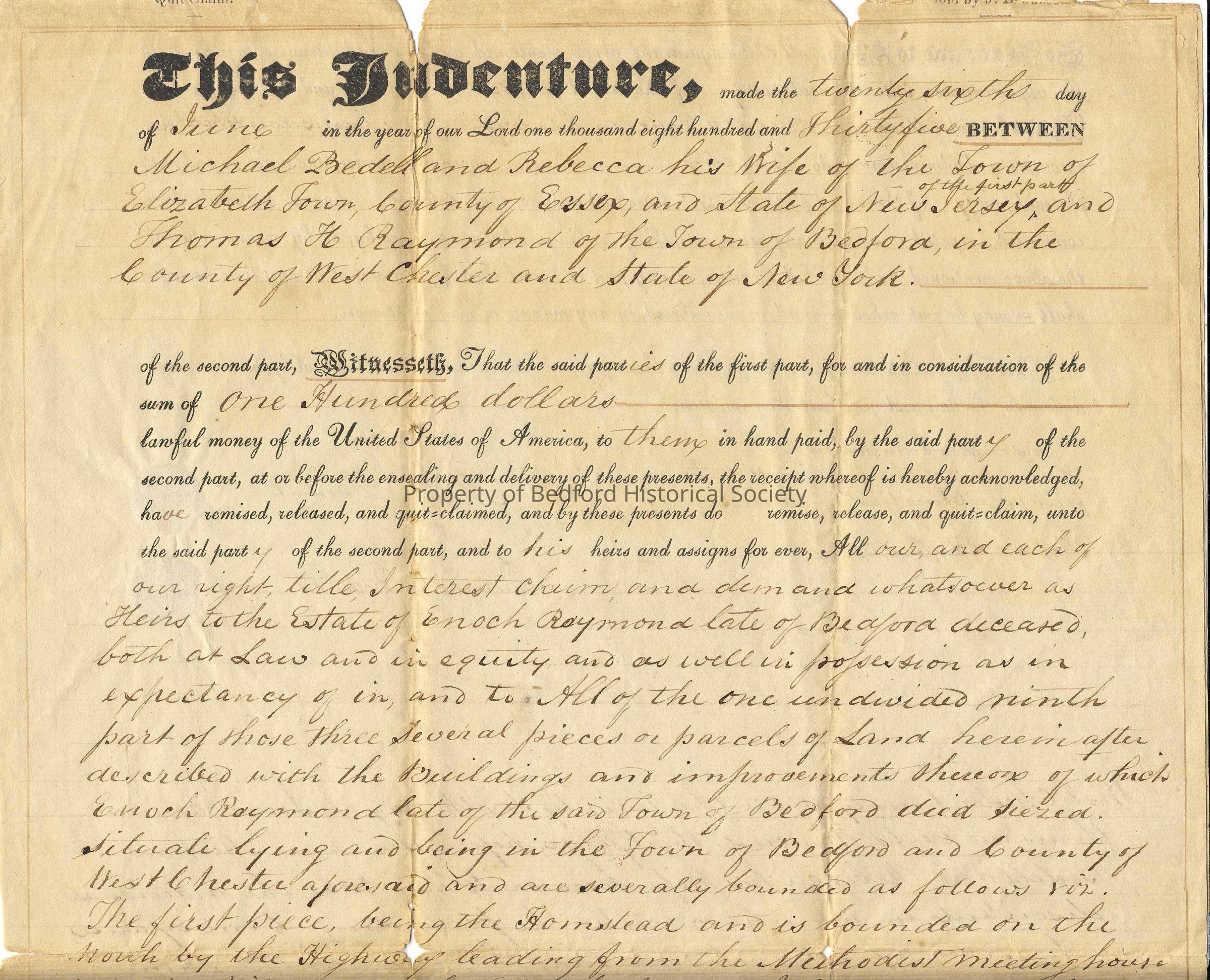 Quit Claim between Michael and Rebecca Bedell and Thomas H. Raymond, dated June 26, 1835