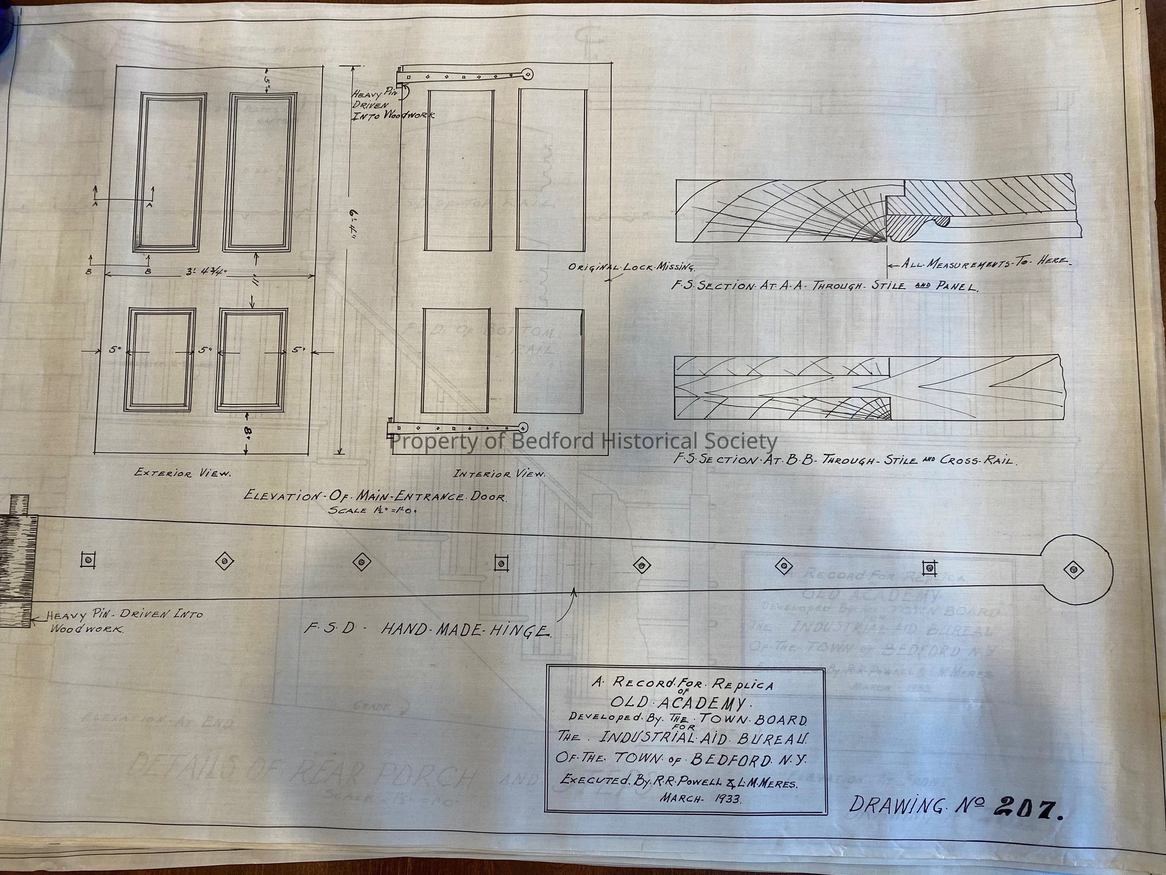 A Record for replica of Old Academy developed by the Town of Bedford. The Industrial Bureau of the Town of Bedford, NY executed by R.R. Powell & L.M. Merles, April, 1933.