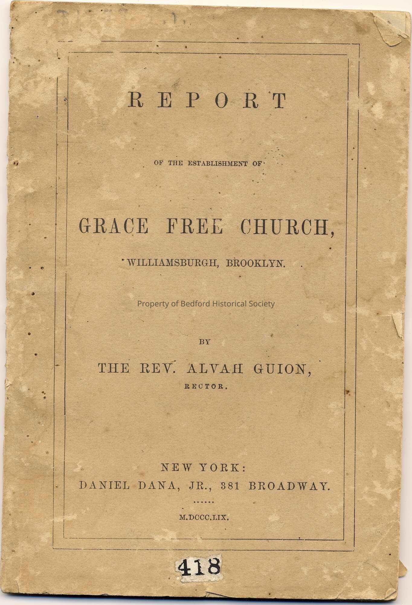 Report on the Establishment of Grace Free Church, 1859