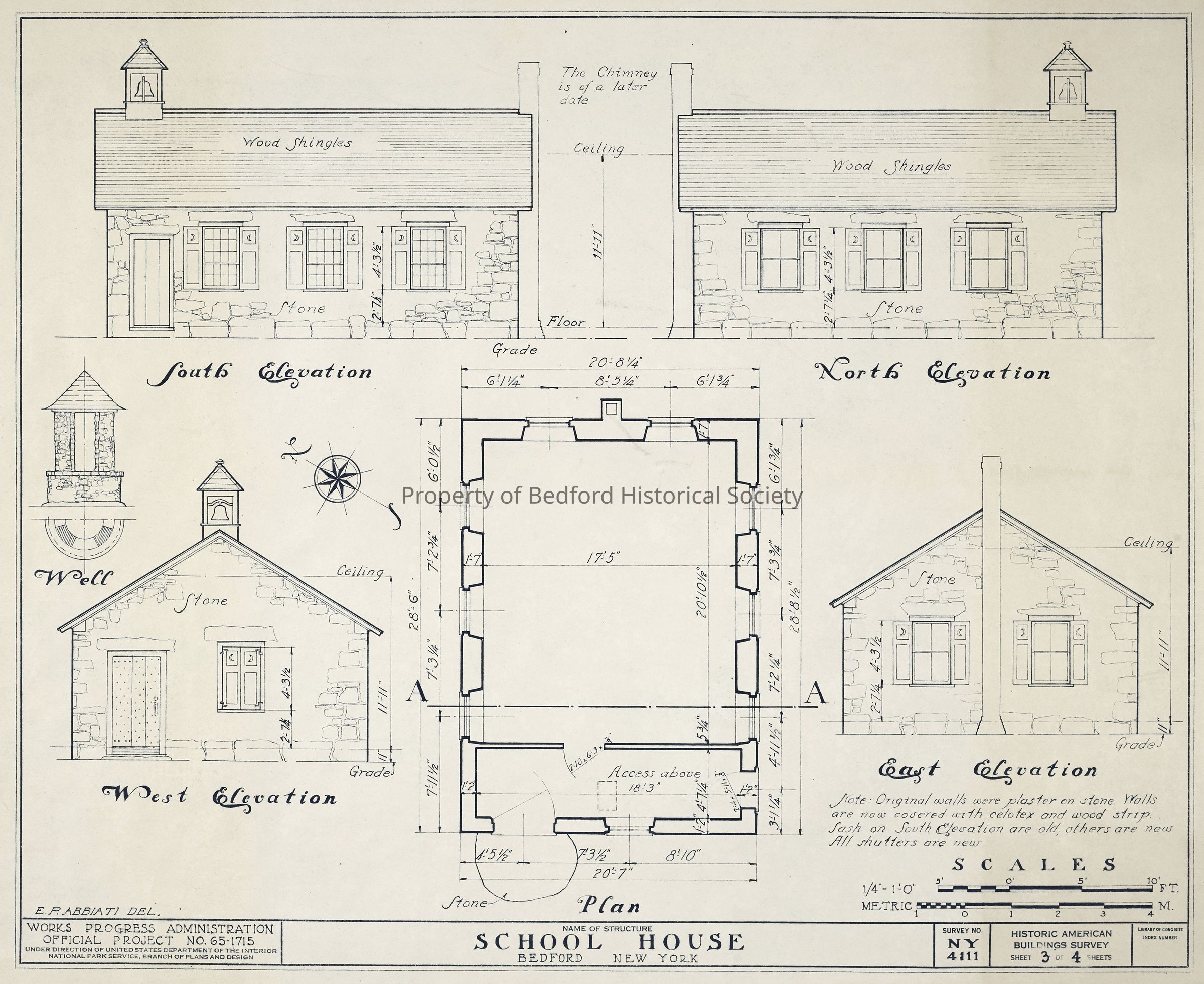 Architectural Drawings of School House and elements EP Abbiati Works Progress Administration from official project administration NO 65-1715 Survey II 4111 (NY)