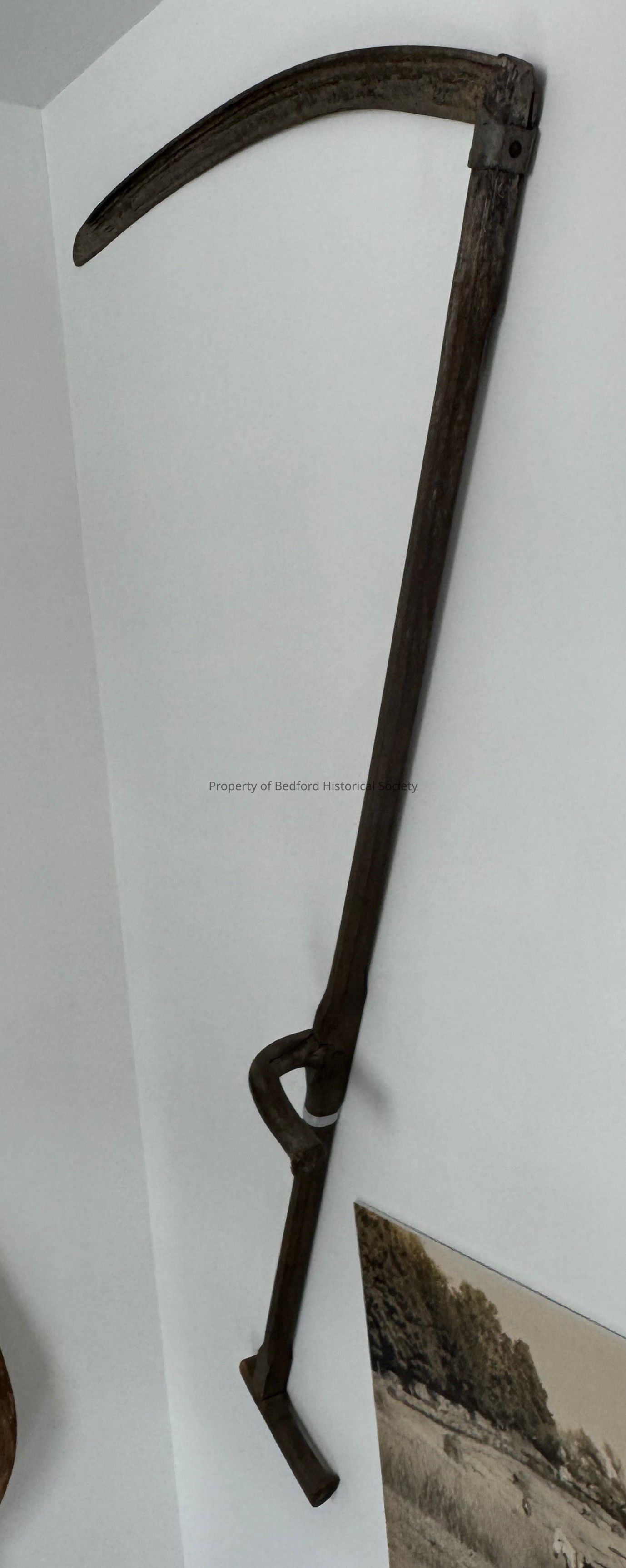 red catalog book reads: scythe, early Bedford, c. 1776 gift of Mr. and Mrs. Edwin de T. Bechtel