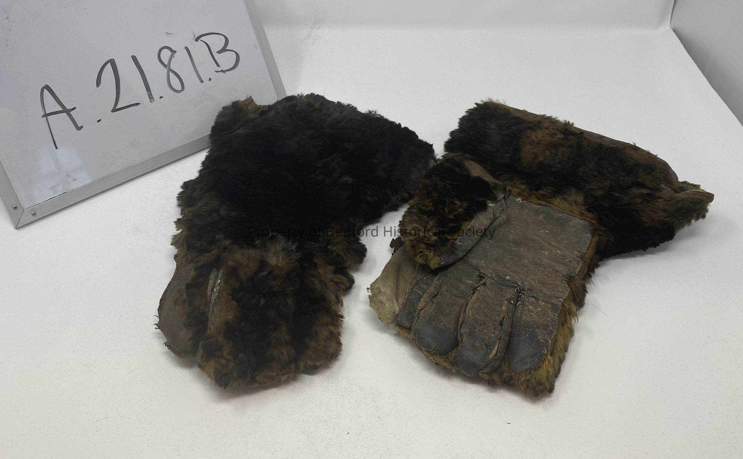 men's fur gloves found in bag labeled "Men's seal cap and gloves" 11" L possibly from Elizabeth Cole Collection