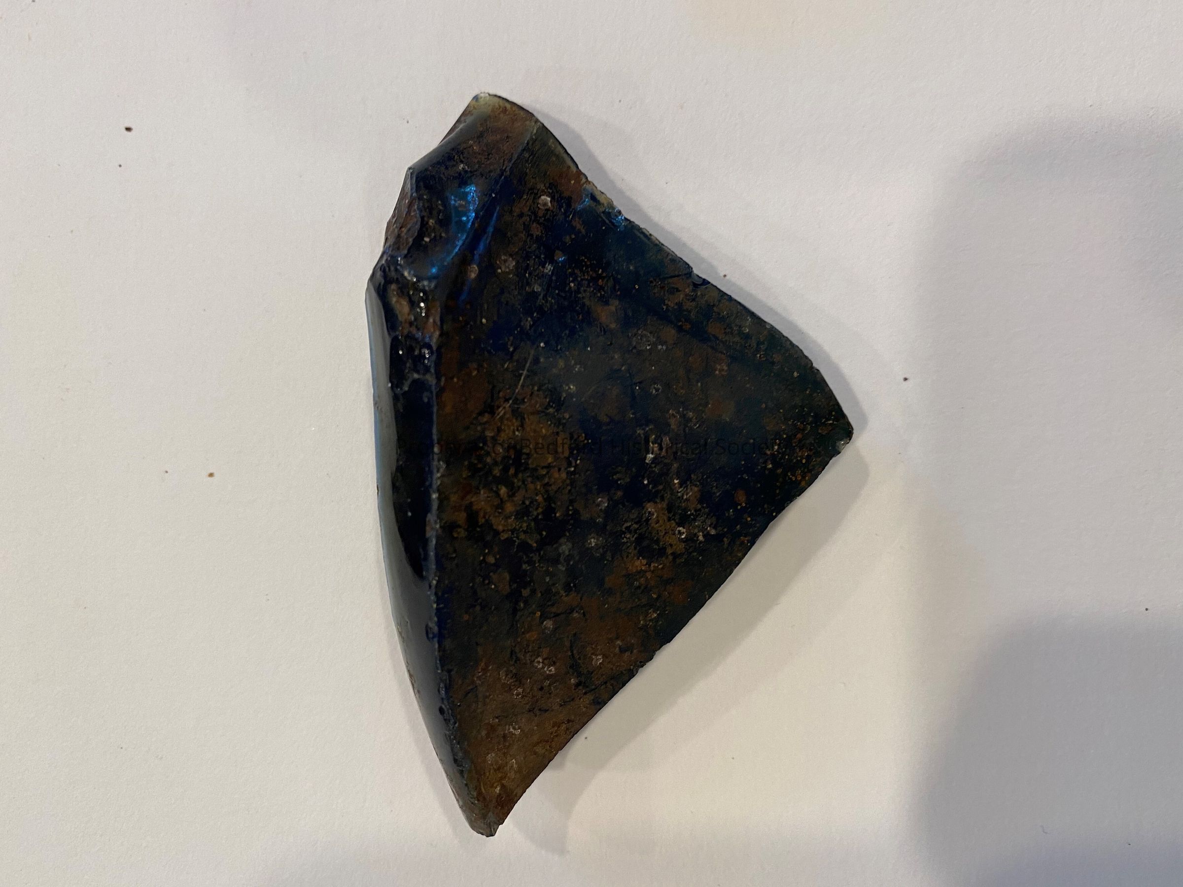 Pottery sherd of glossy black glaze, light brown sponge pattern