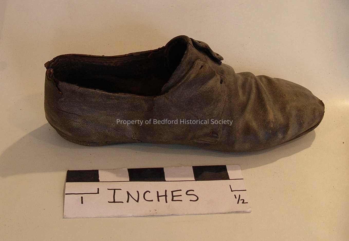 Leather shoe with no laces from shoemaking bench