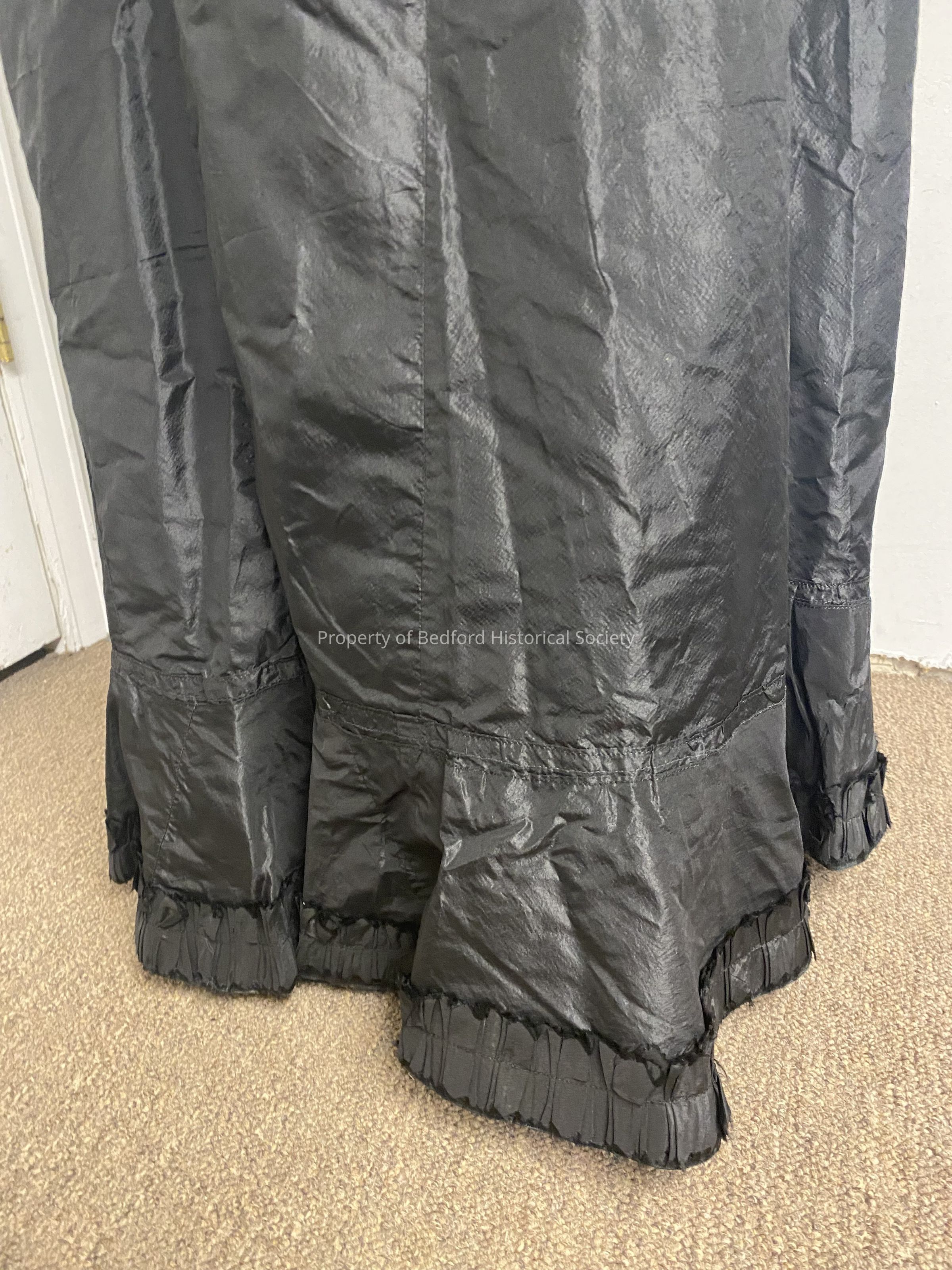 Black silk taffeta? slirt with box pleats around hem
