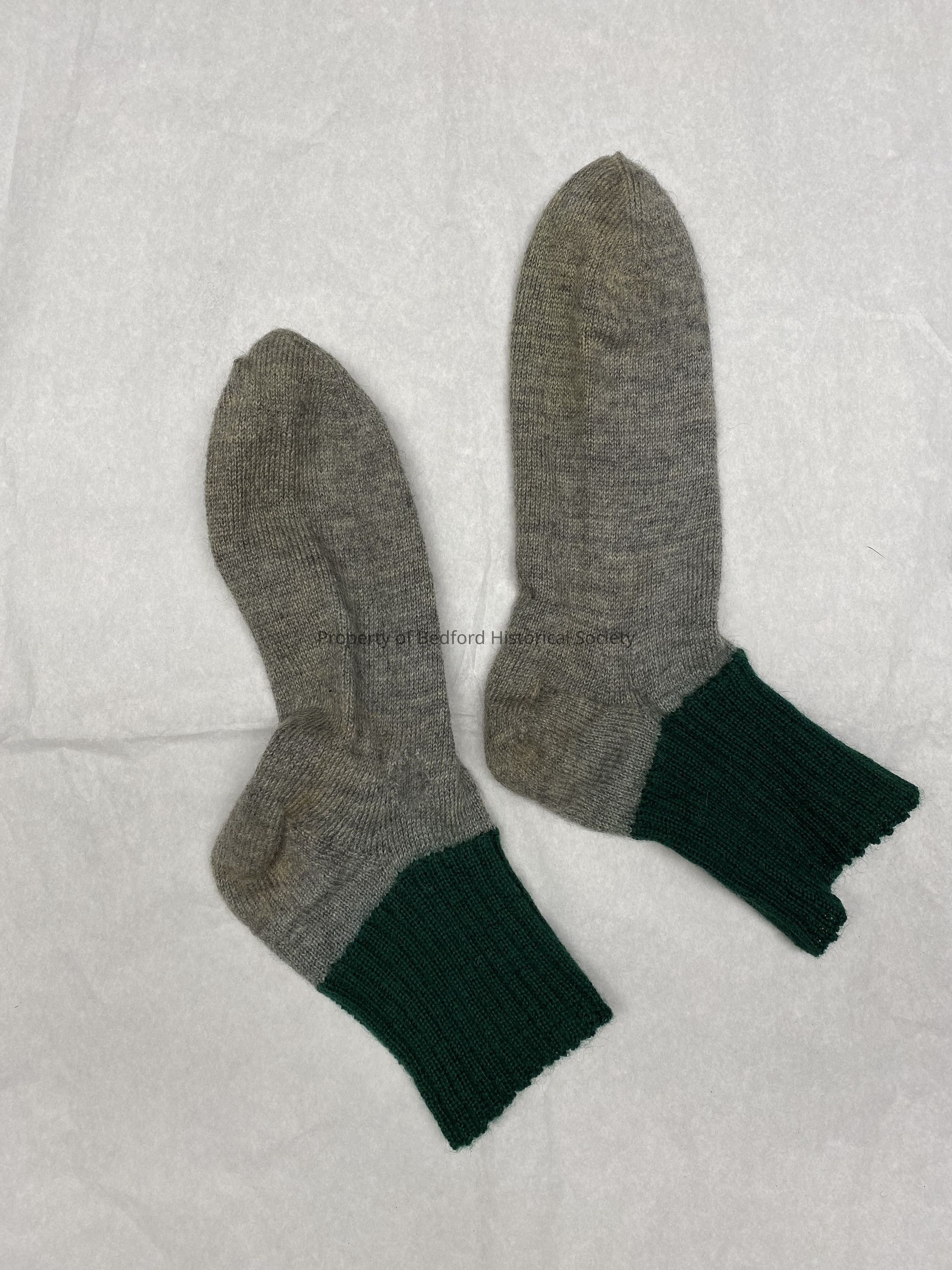 knit gray and forest green socks that came with "Mr. Botzow's Tinker Costume"