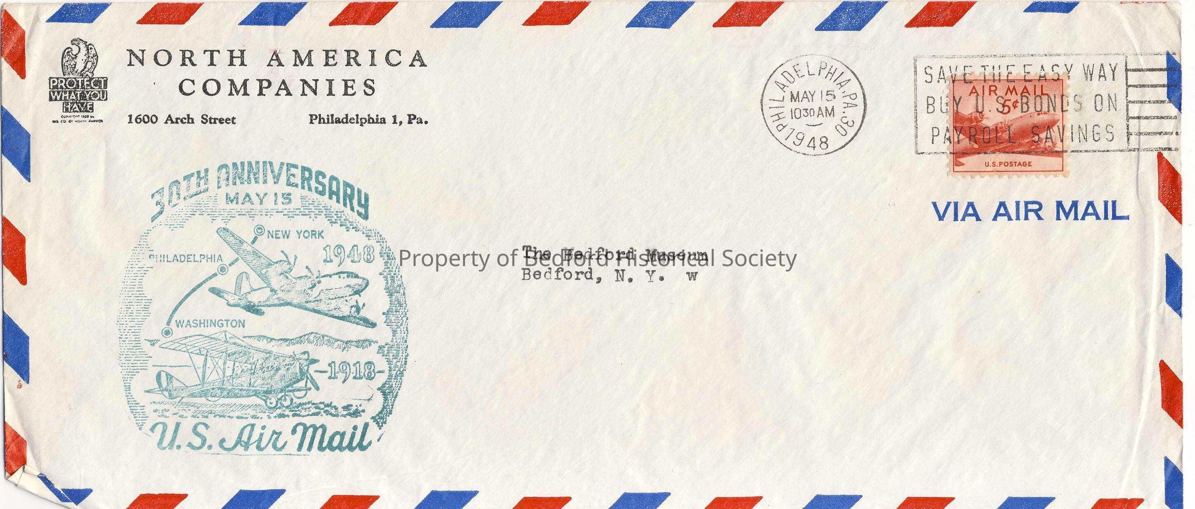 Special Issue Philatelic Cover commemorating the 30th Anniversary of the first Air Mail route, addressed to the Bedford Museum