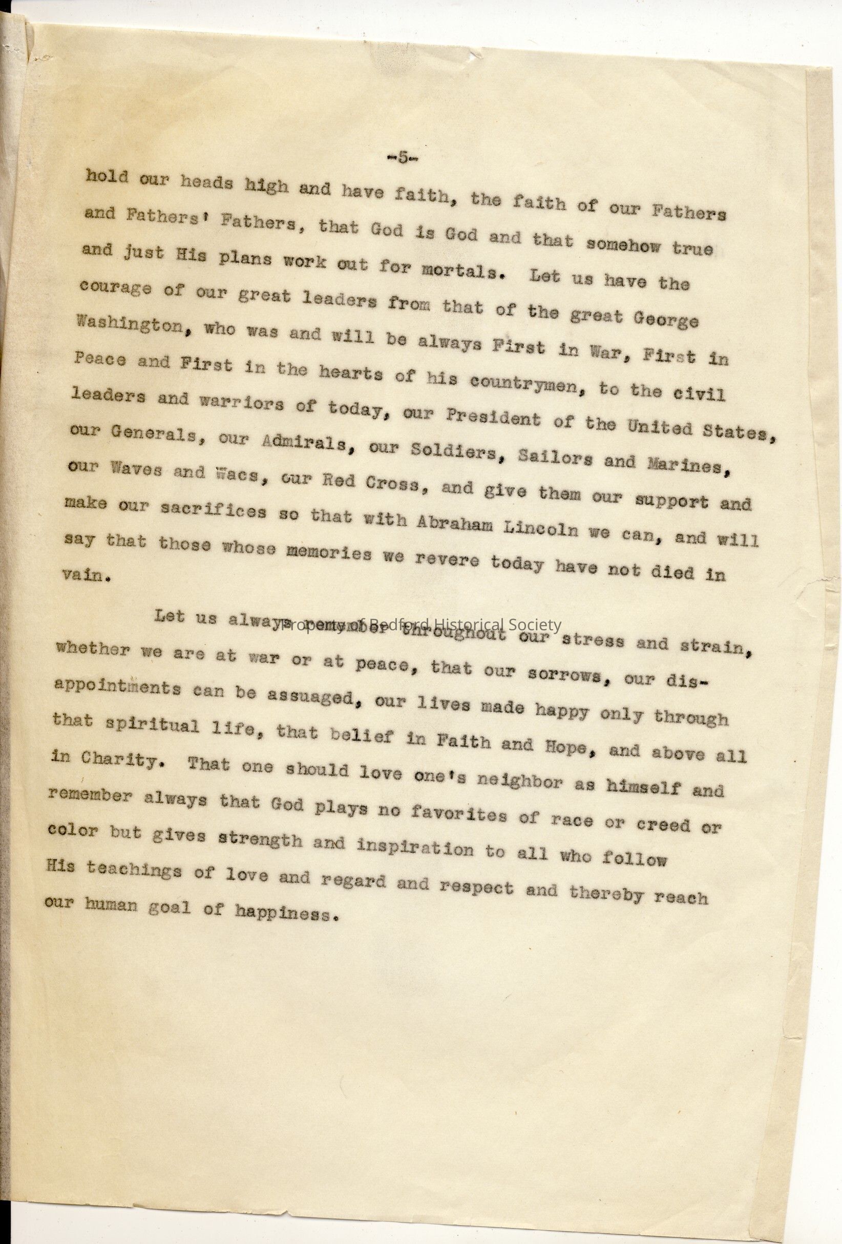 Memorial Day Address given by Gustavus Town Kirby on May 30, 1945 at Bedford Hills, New York. Page 5 of 5