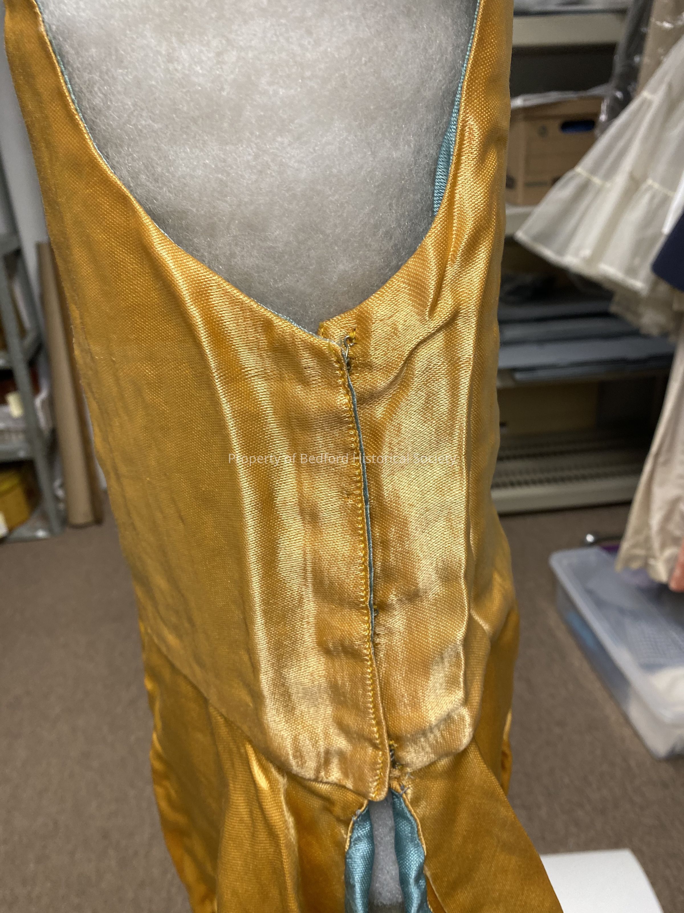 gold "Spinster" Costume with sequin straps and ice blue lining