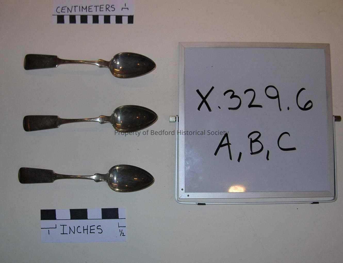 3 Silver tablespoons Hallmark: S.H. Smith? Initials: H.H. Brown? (this was on the catalogue card--I will verify at another time-EZ2008)