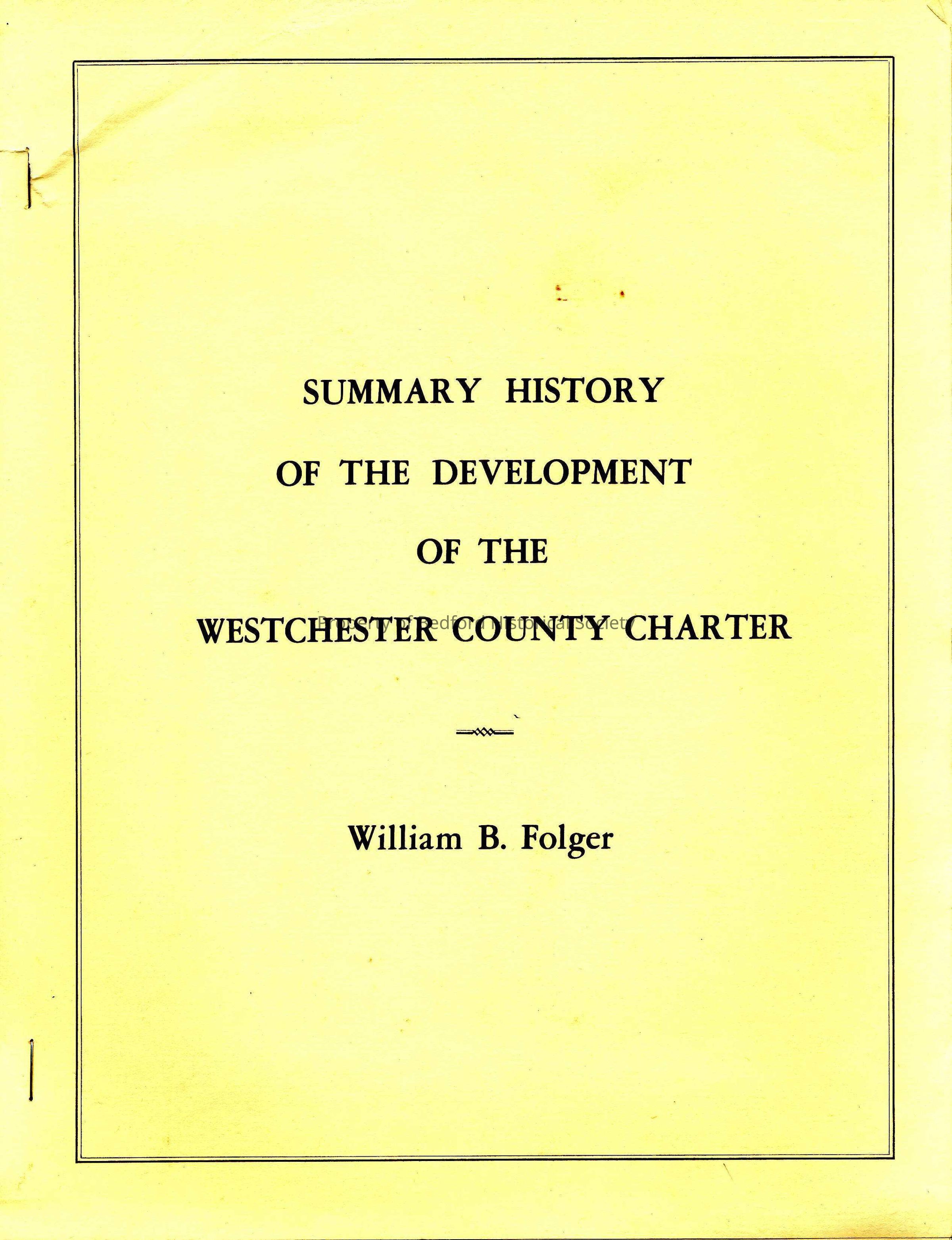 Summary History of the Development of the Westchester County Charter by William B. Folger