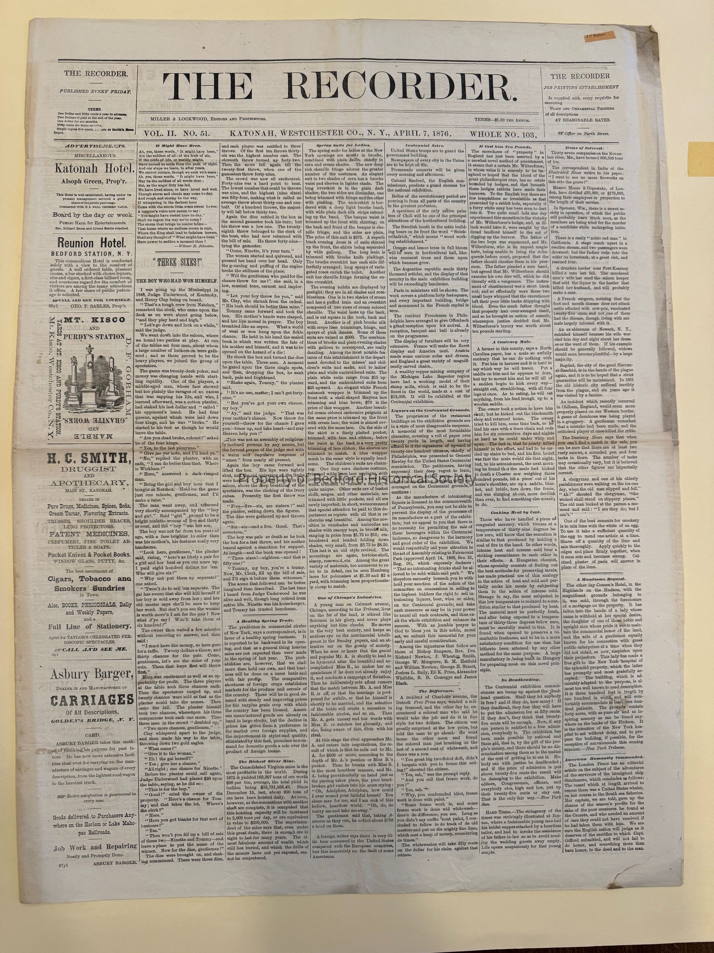 The Recorder, April 7, 1876
