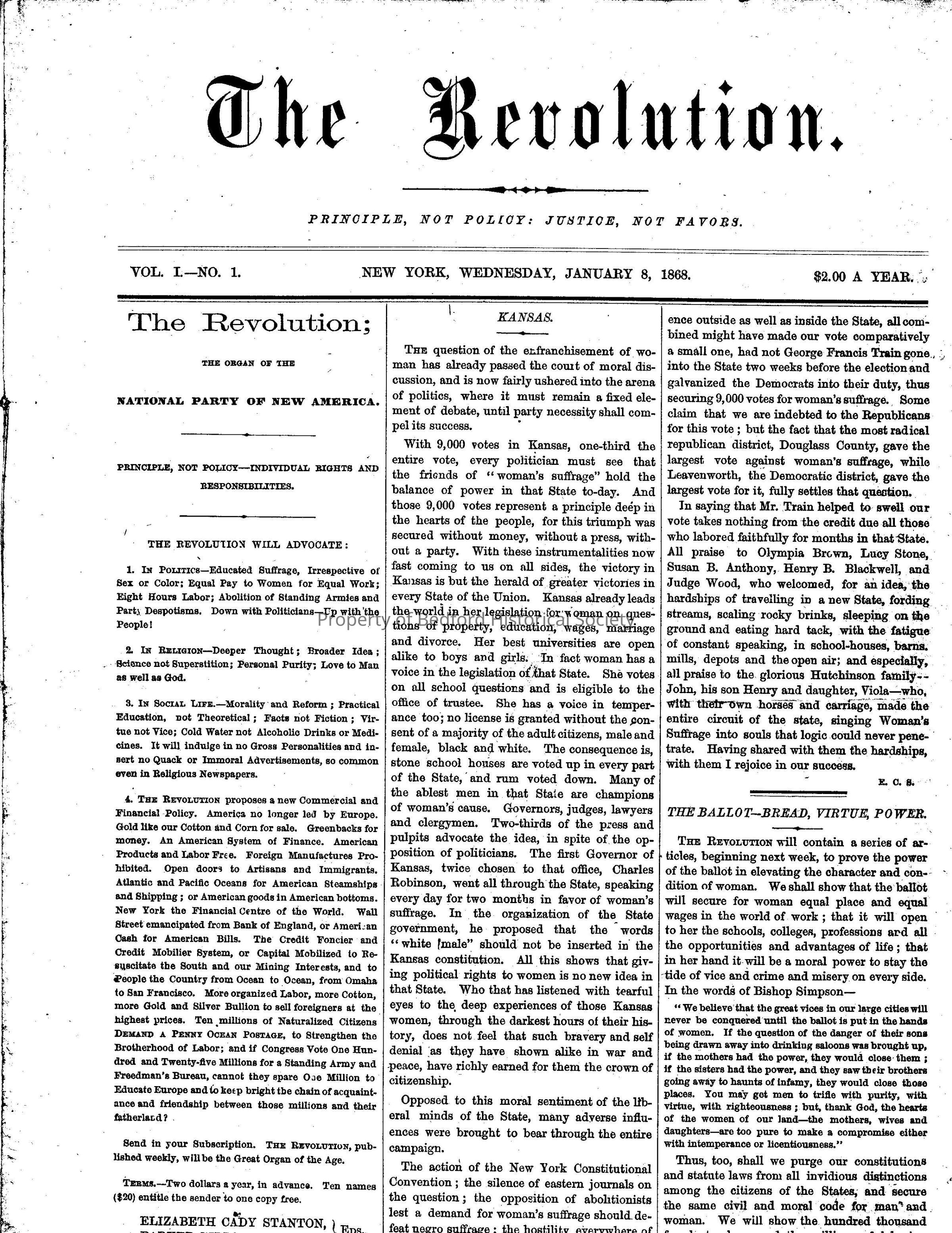 The Revolution, Vol. 1-No.1, January 8th, 1868Entry/Object ID