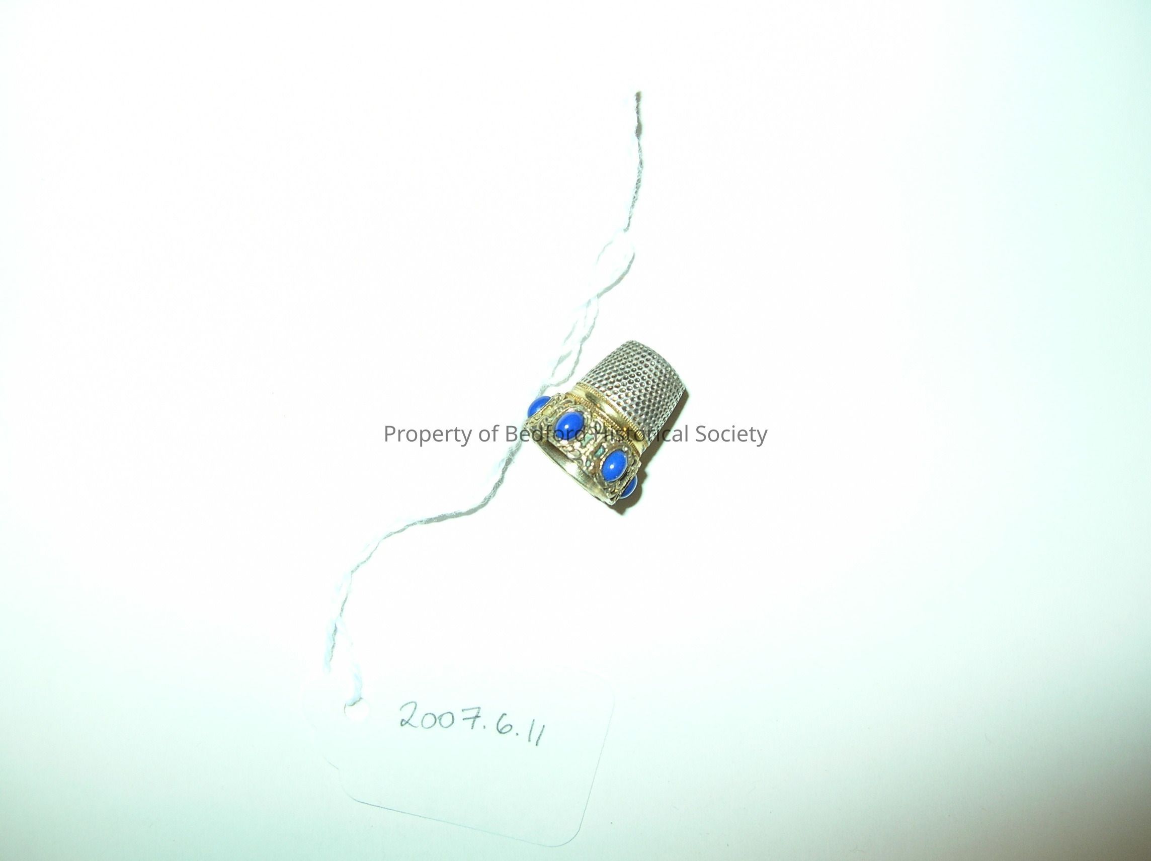 Gold thimble with blue inlaid stones