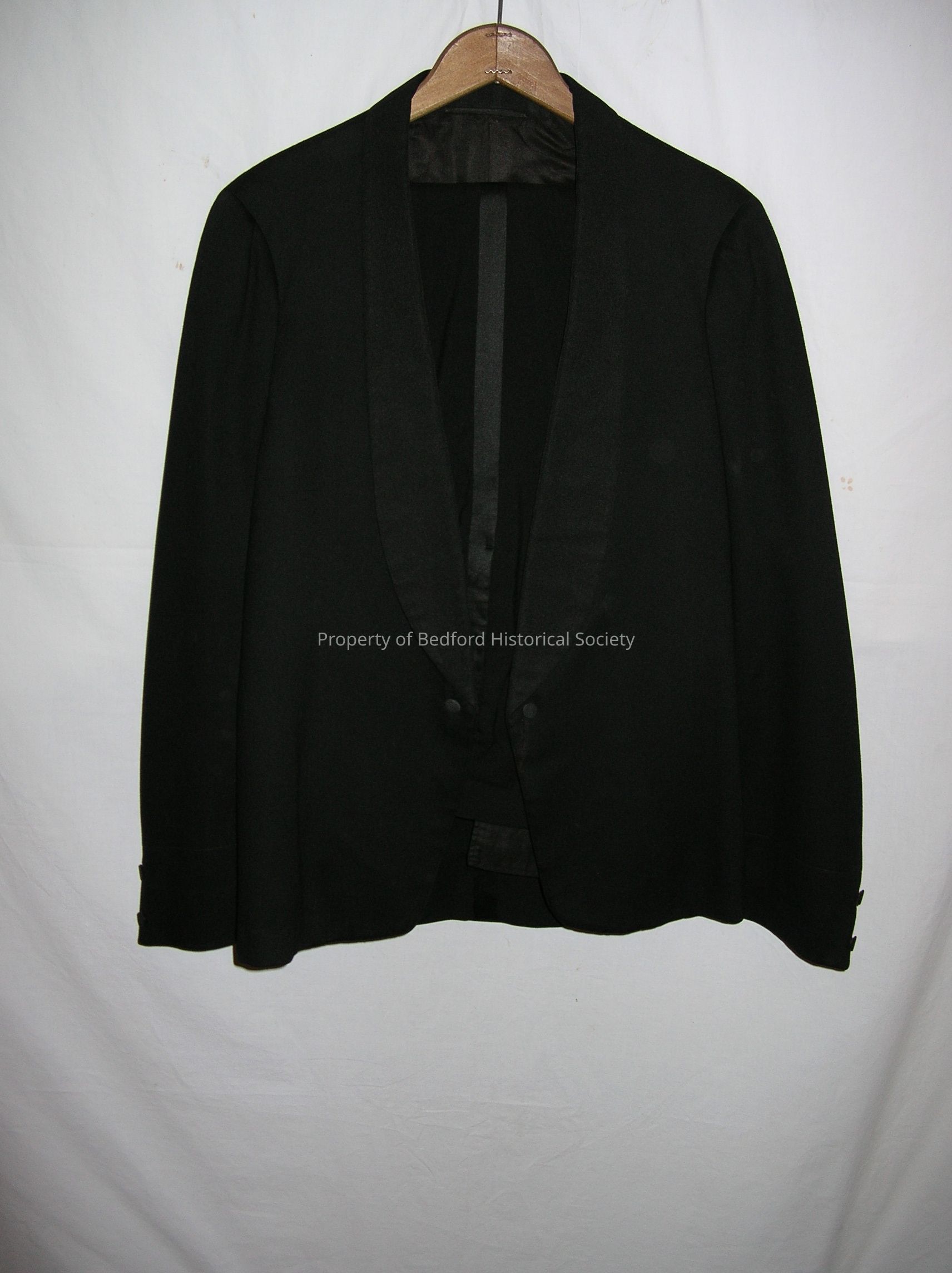 Black tuxedo jacket and pants. Lemmert, Baltimore. Label reads, "Name: Dr. R.J. Cole; Date: 1/22/02" 1902. Excellent condition.
