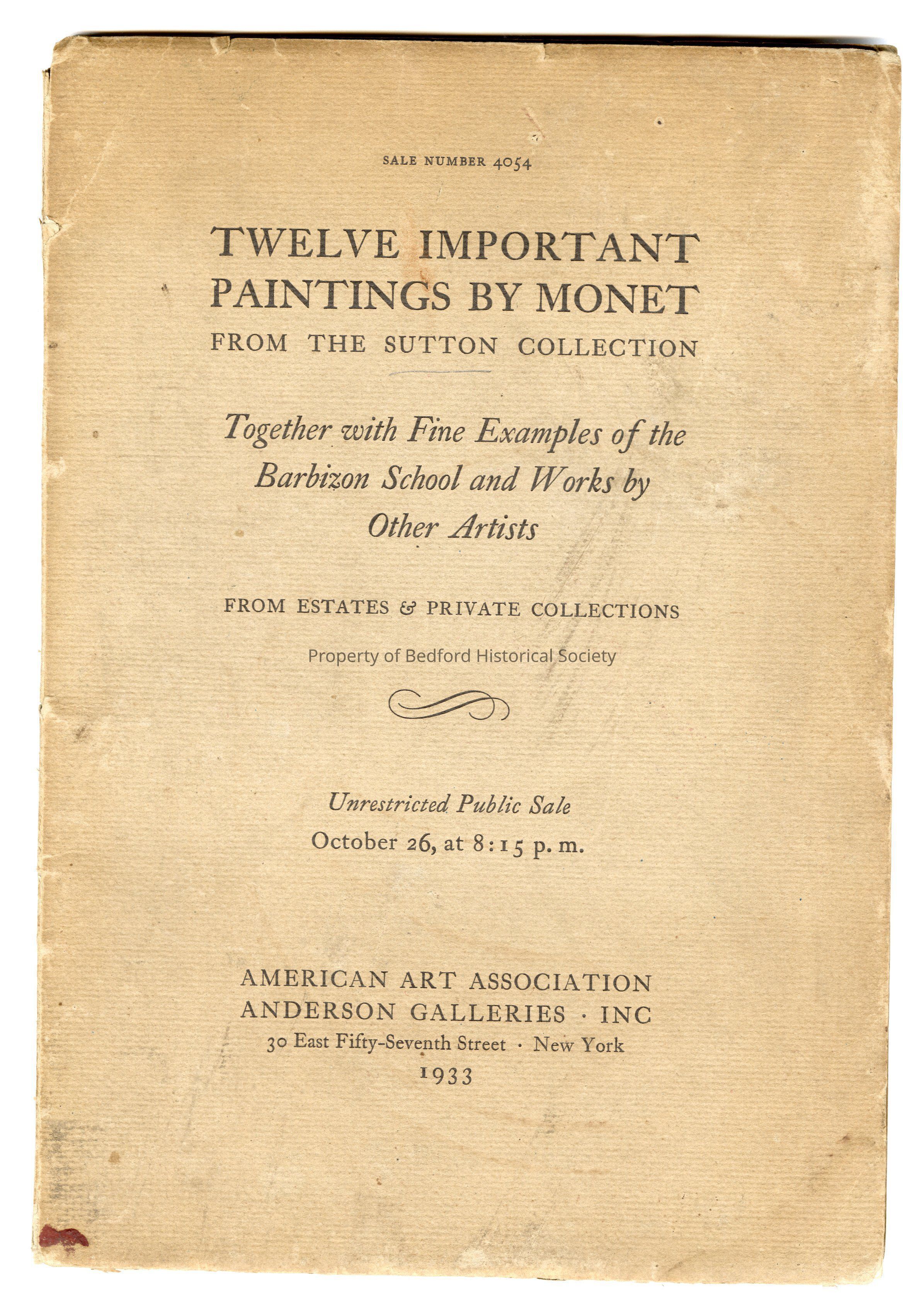 1933 Monet Catalogue from Sutton Collection