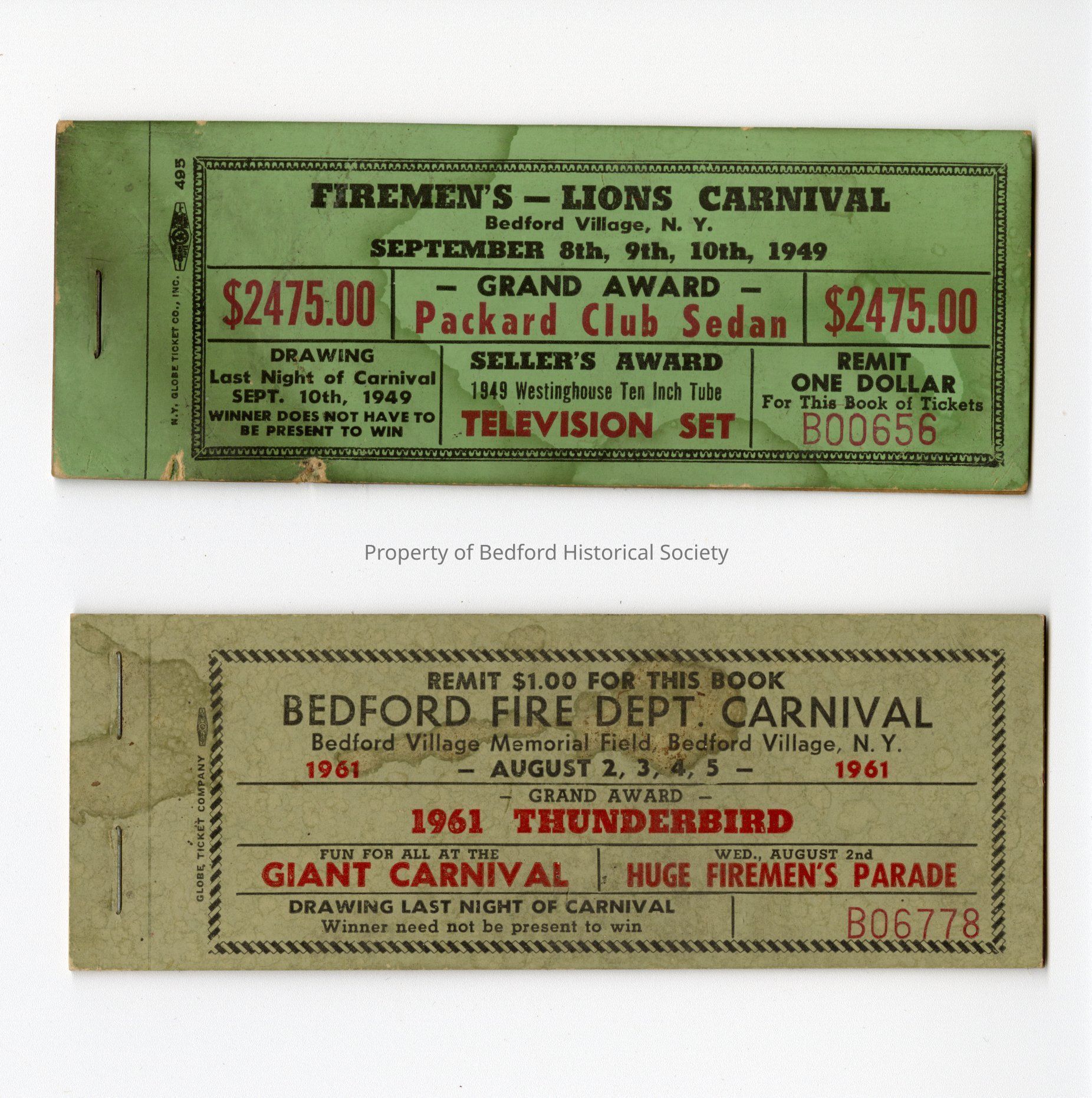 2nd ticket: Bedford Fire Department Carnival, Bedford Village Memorial Field, Bedford Village, N.Y., August 2, 3, 4, 5, 1961
