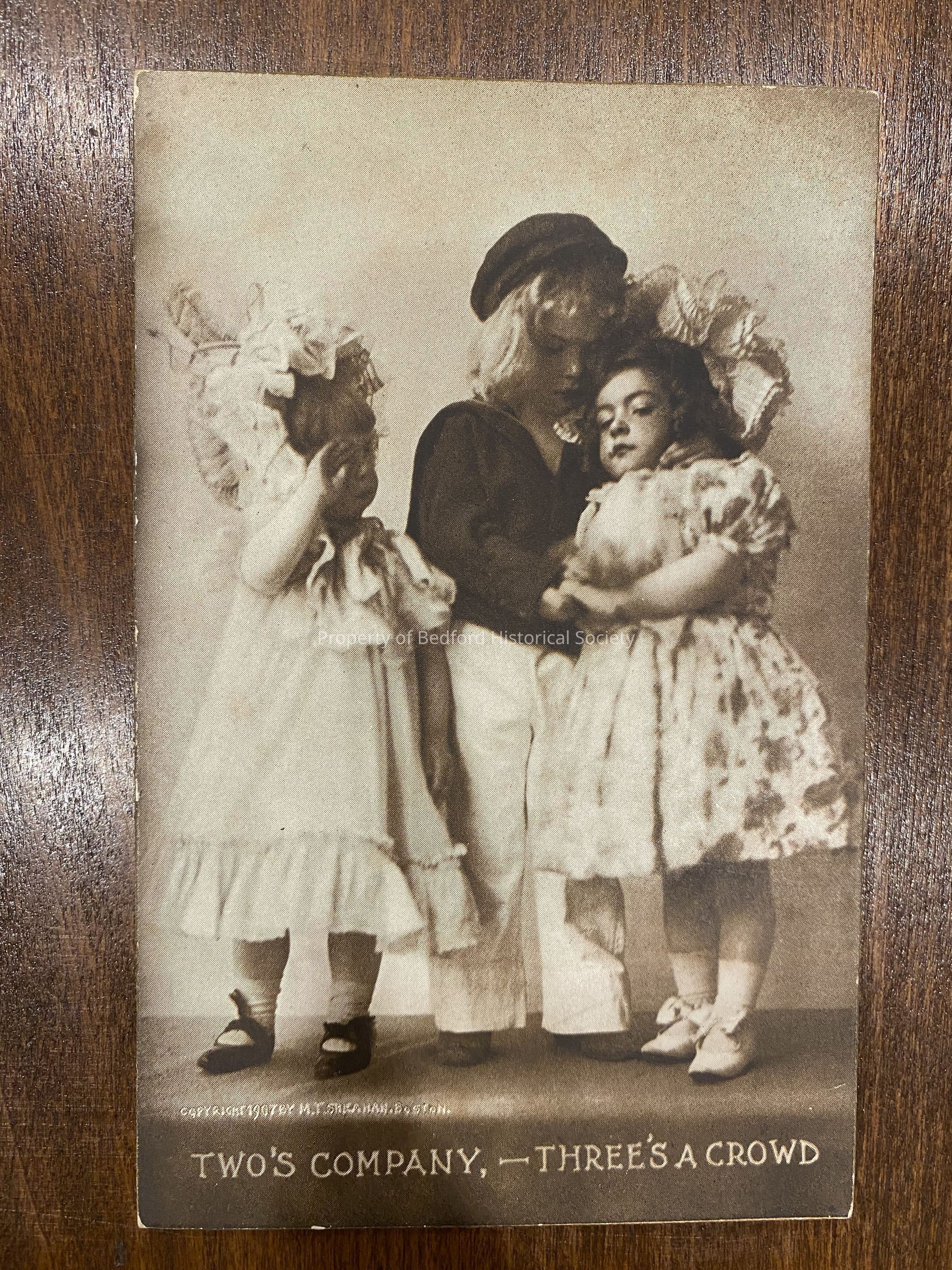 Postcard of three children, reads: "Two's Company, -Three's A Crowd ", 1907 5.5" x 3.5"