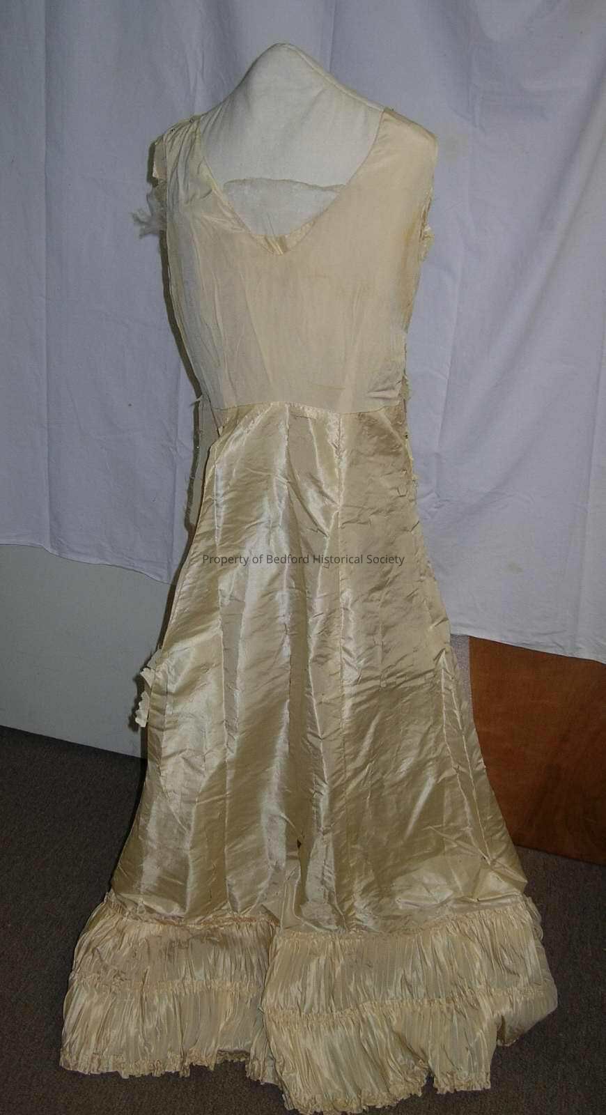 Underdress associated with wedding dress ensemble. Worn by Annie Hegeler at her marriage to Rufus Cole, Jan. 1908.