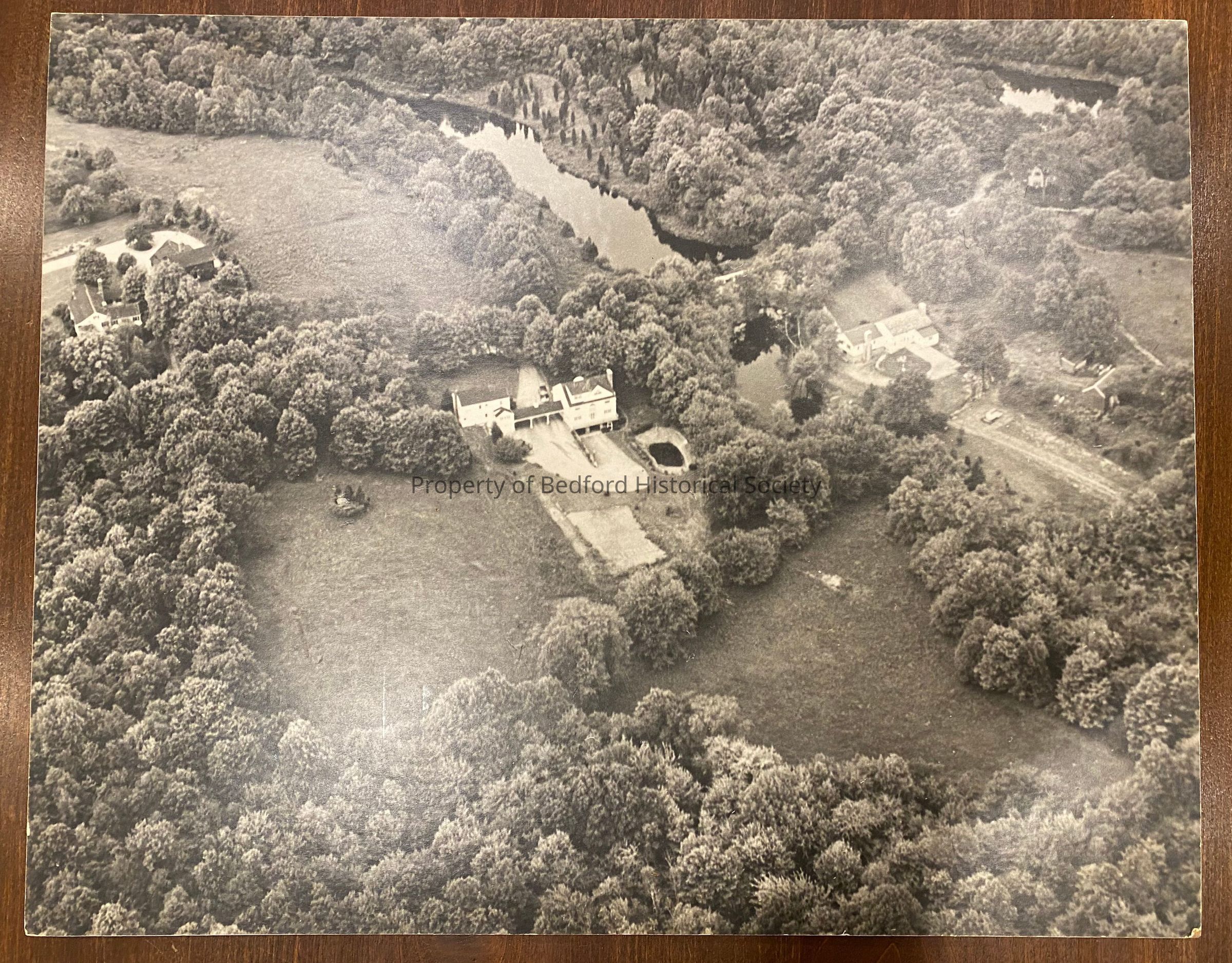 unknown aerial view mounted on cardboard by company Air Pixies, c. 1950s?