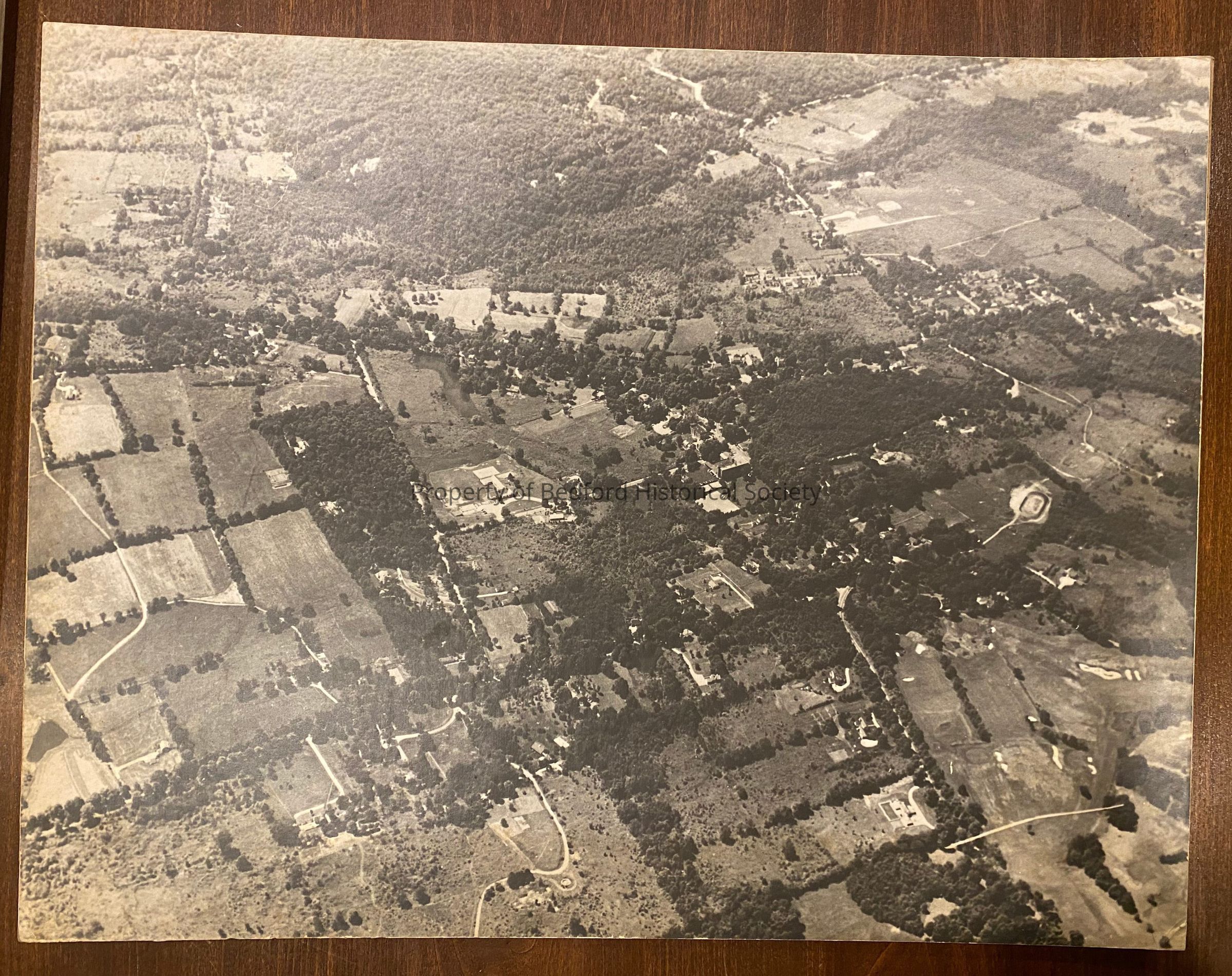 unknown aerial view, possibly Bedford Village mounted on cardboard by company Air Pixies, c. 1950s?