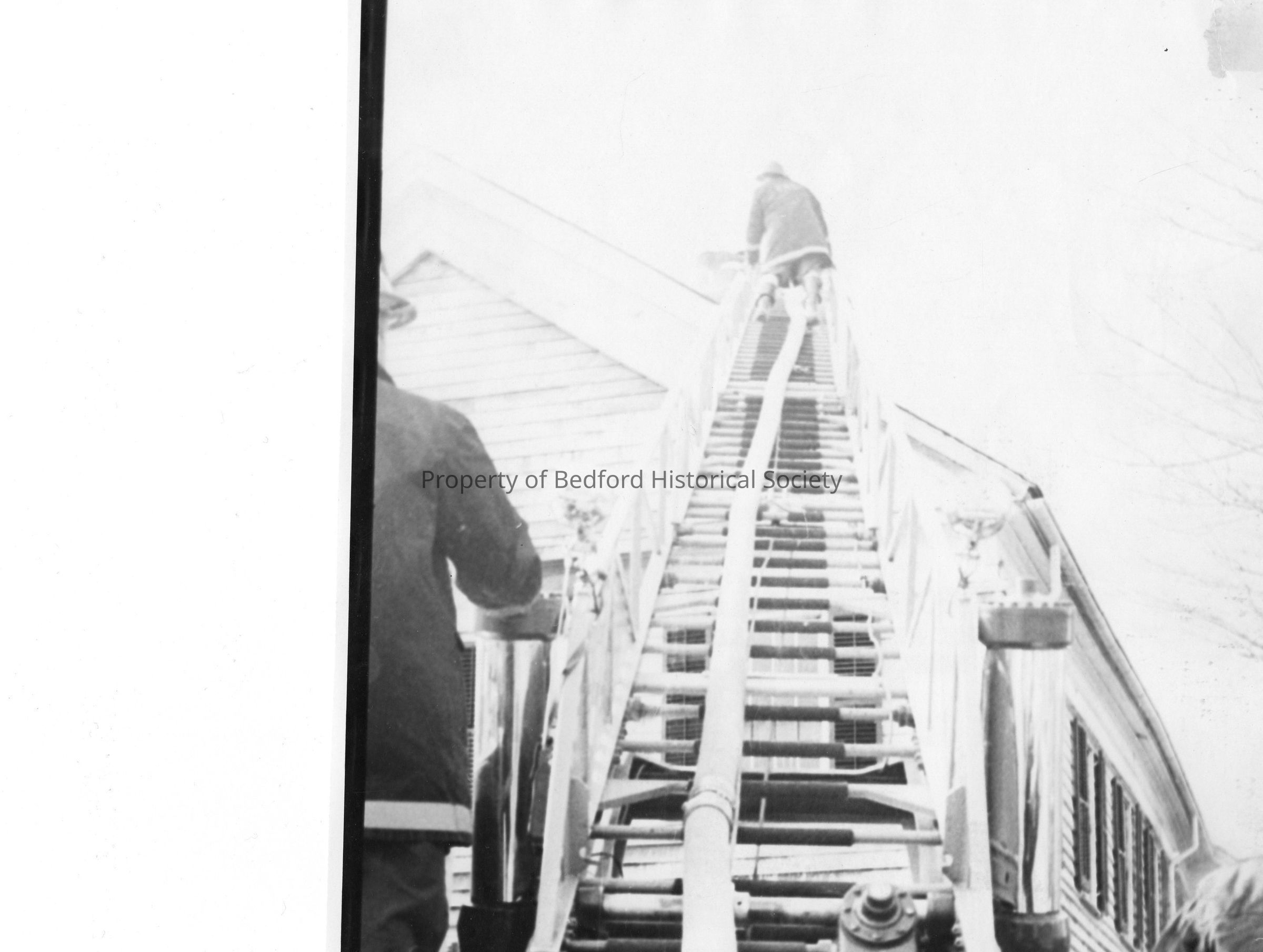 View up the ladder to the roof of Historical Hall