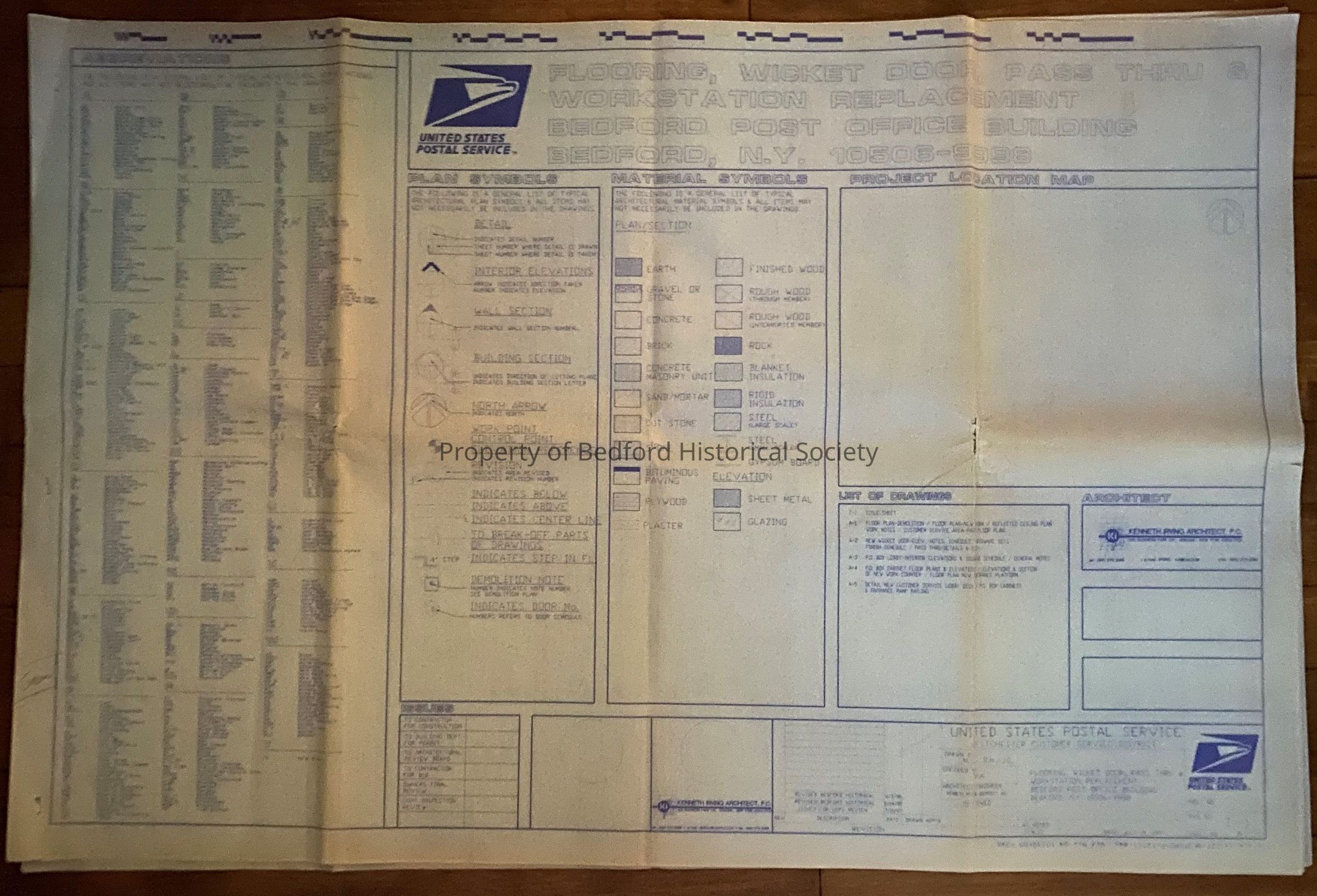 Flooring, Wicket door, pass thru and workstation replacement for Bedford Post Office Building through United States Postal Service, Kenneth Irving, Architect