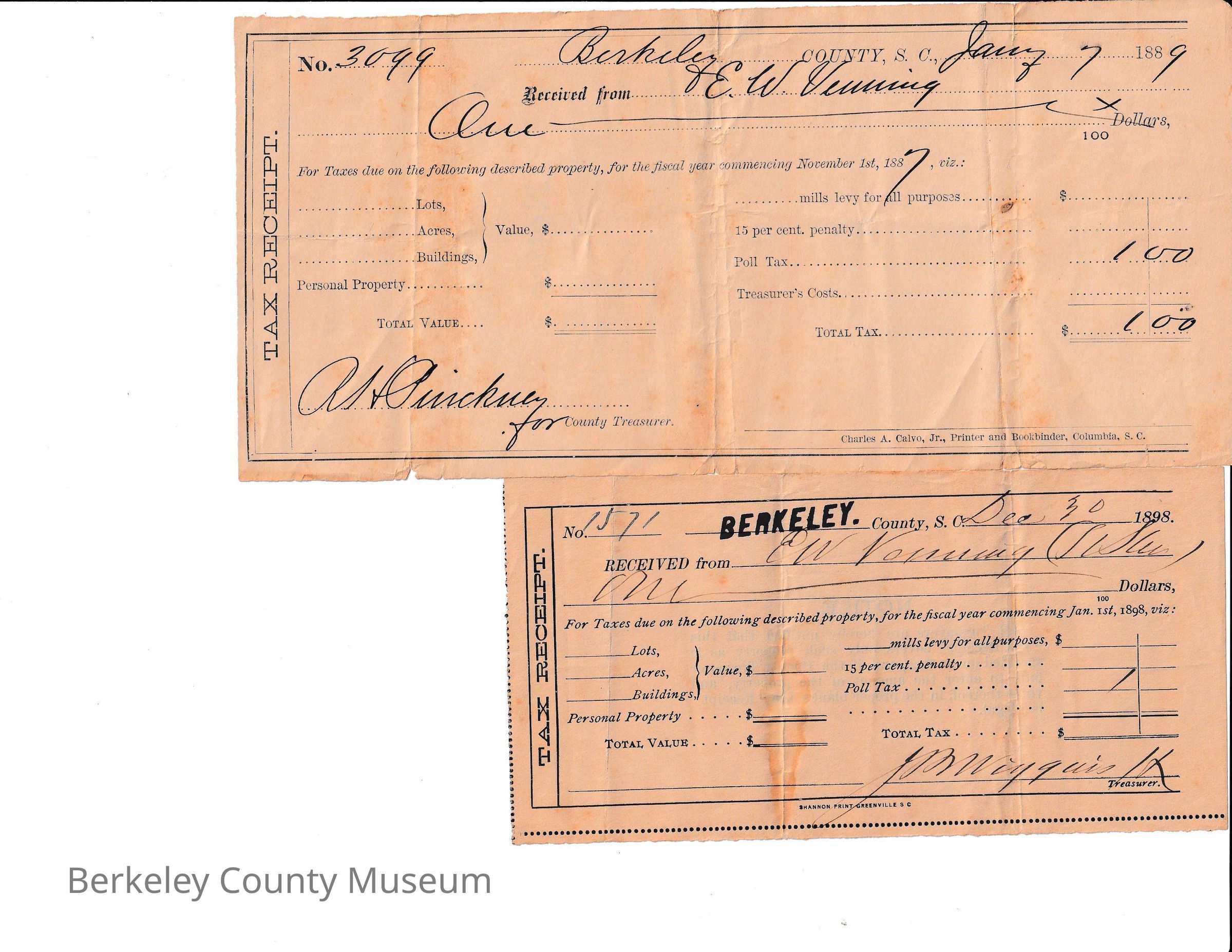 names found in the documents are Venning, Muldrow, Russell. Includes references to Post & Courier and other Charleston businesses. Also includes references to two Berkeley County newspapers.Acquisition