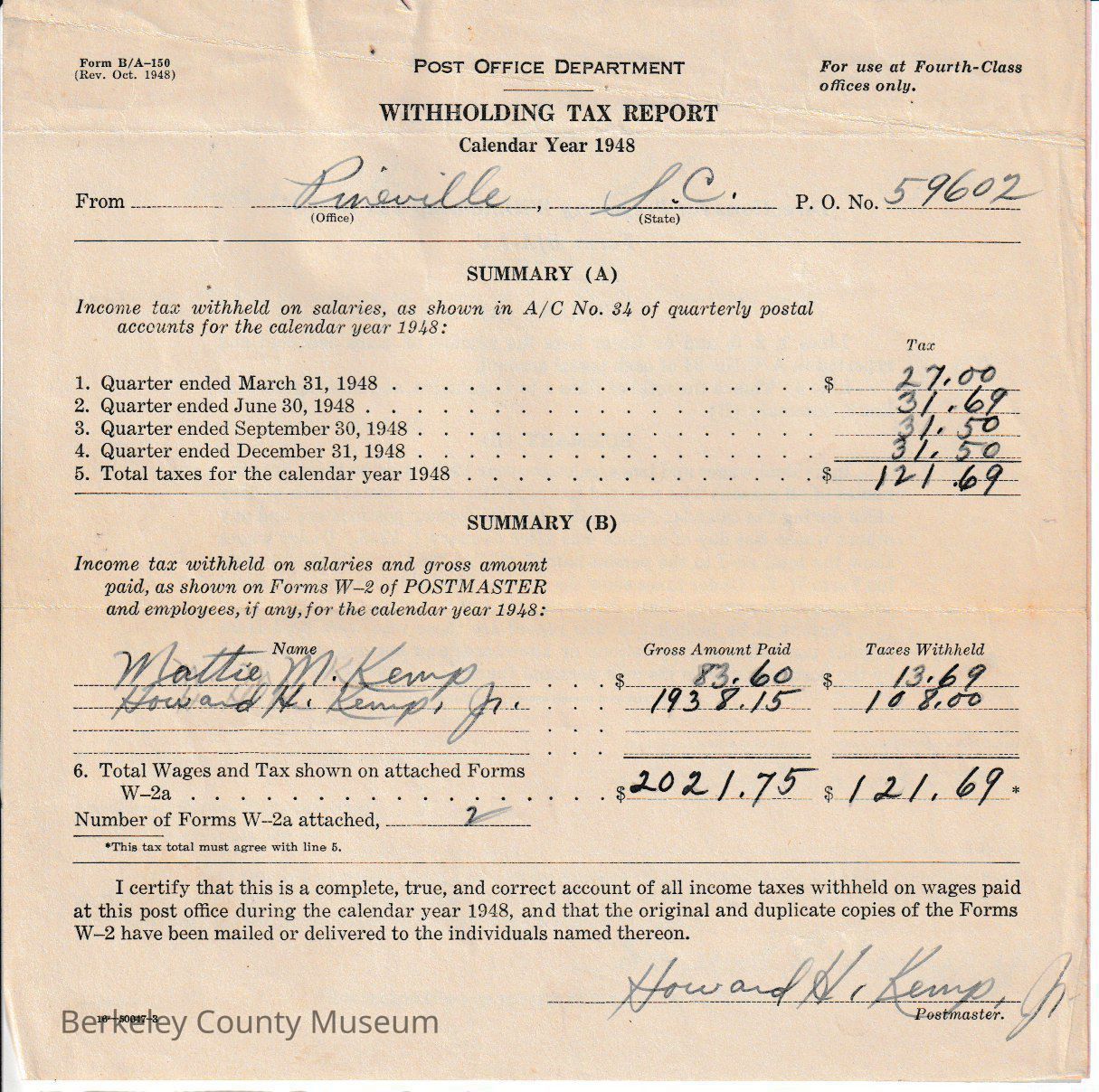 Withholding Tax Reports, 1948-1950, Pineville Post Office