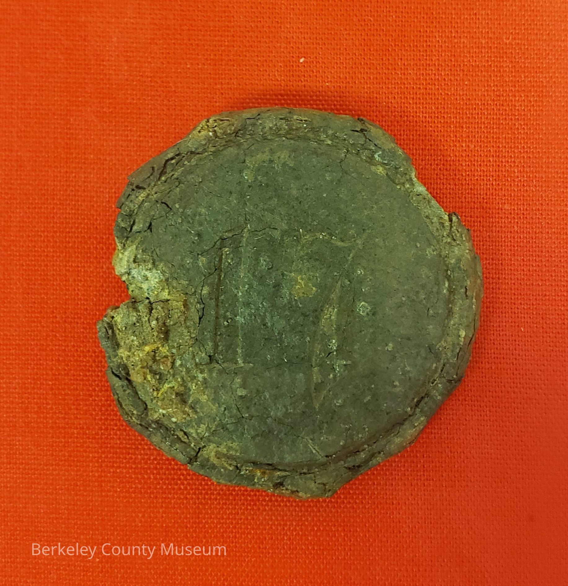 The image depicts a worn pewter button belonging to the 17th Regiment of Foot, featuring the number "17" embossed on its surface.