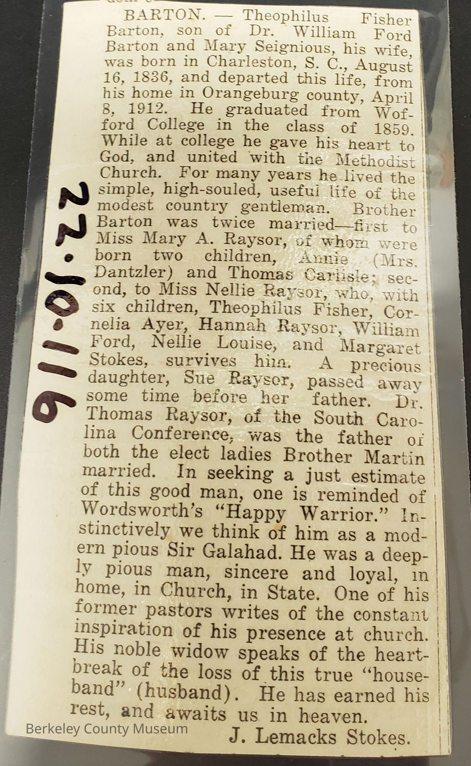 Newspaper Clipping (Theophilus Fisher Barton obituary)