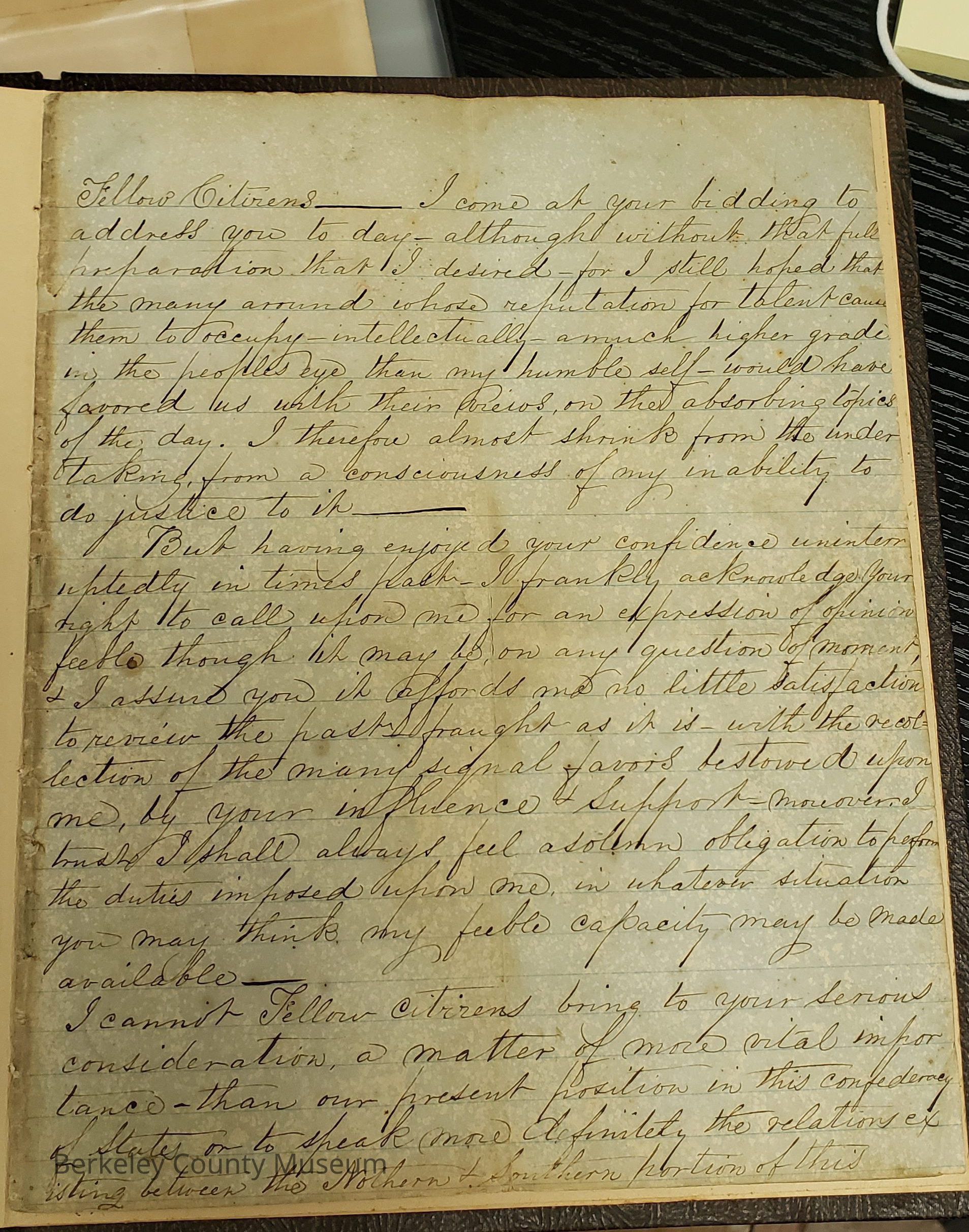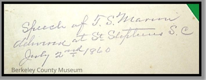 Speech delivered by T.S. Marion at St. Stephen, 1860