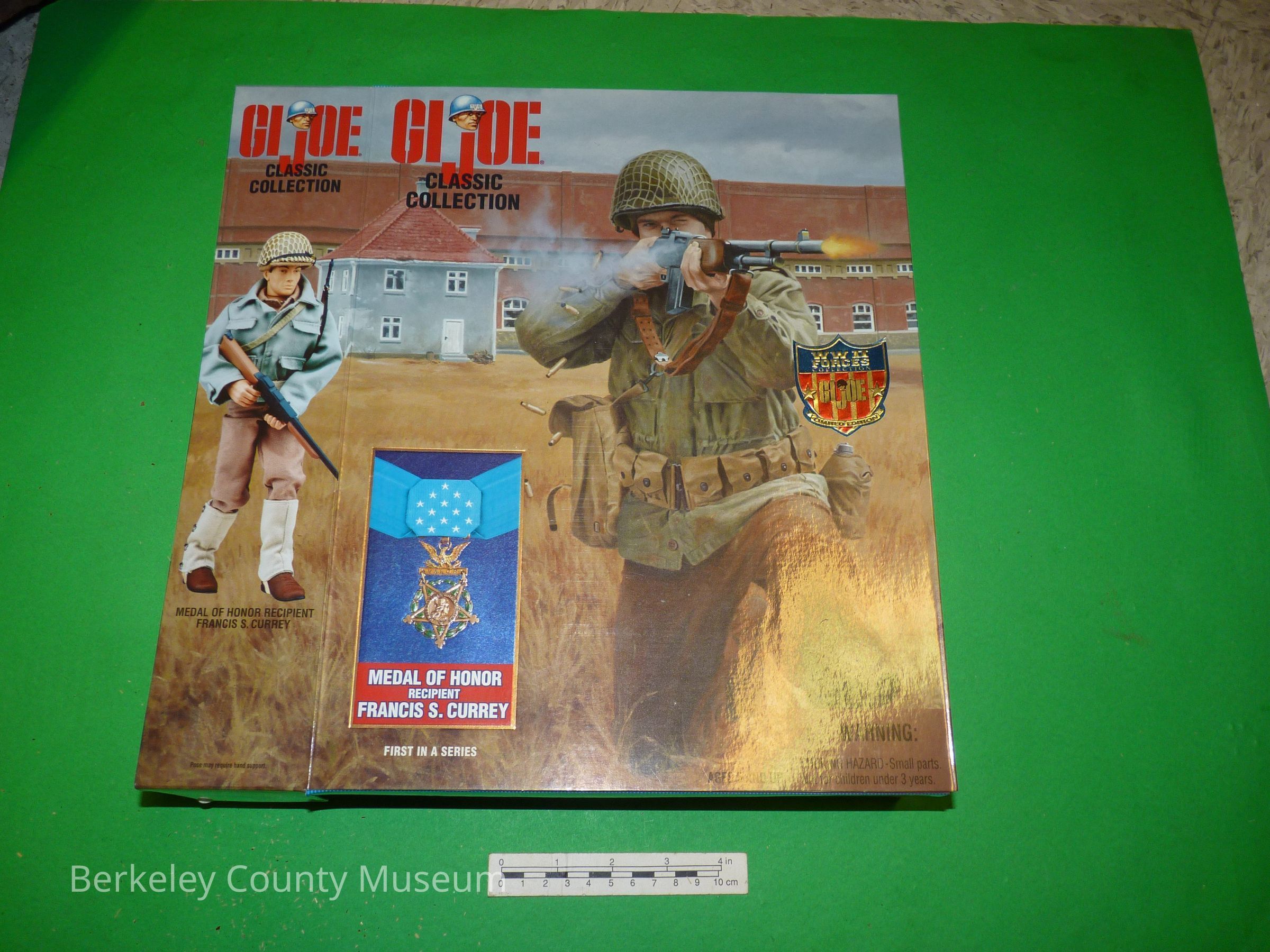 The image shows a G.I. Joe Classic Collection box featuring a Medal of Honor recipient Francis S. Currey