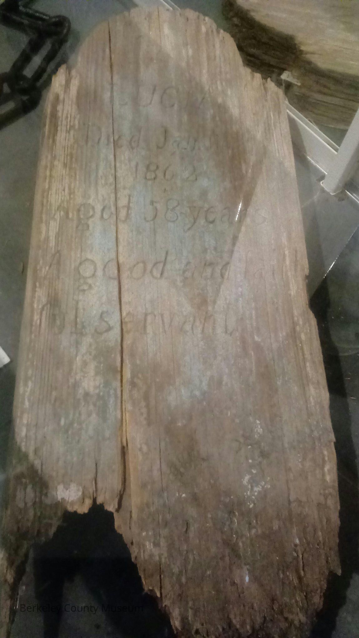 This wooden post from Hyde Park Plantation once marked the resting place of an enslaved woman named Lucia.