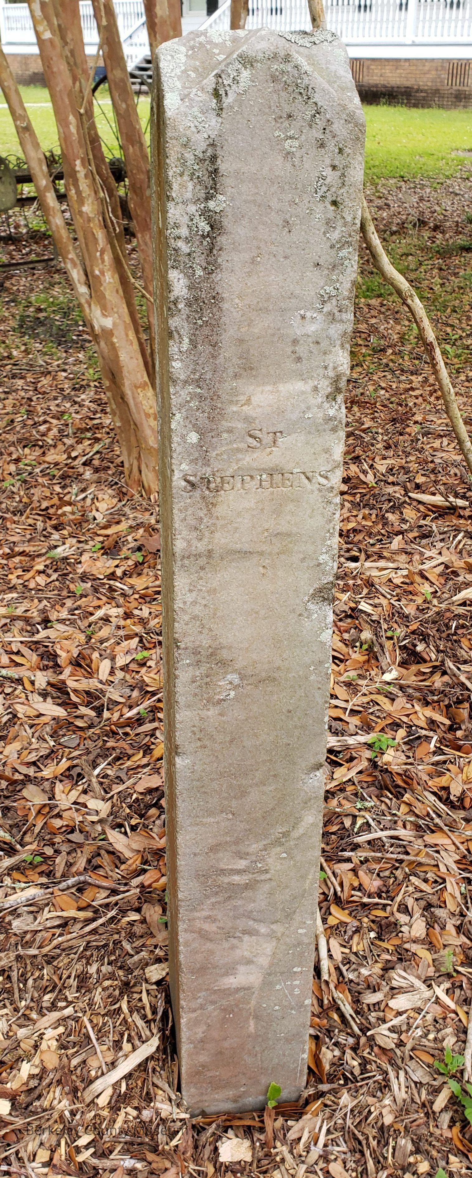 Granite marker used to delineate the boundary between St. John's and St. Stephen's parishes. St. John's Berkeley was one of the original ten parishes of South Carolina; St. Stephen's parish was taken from its northeastern portion in 1754. Both parishes were dissolved into Berkeley County when the parish system ended in 1865.Context