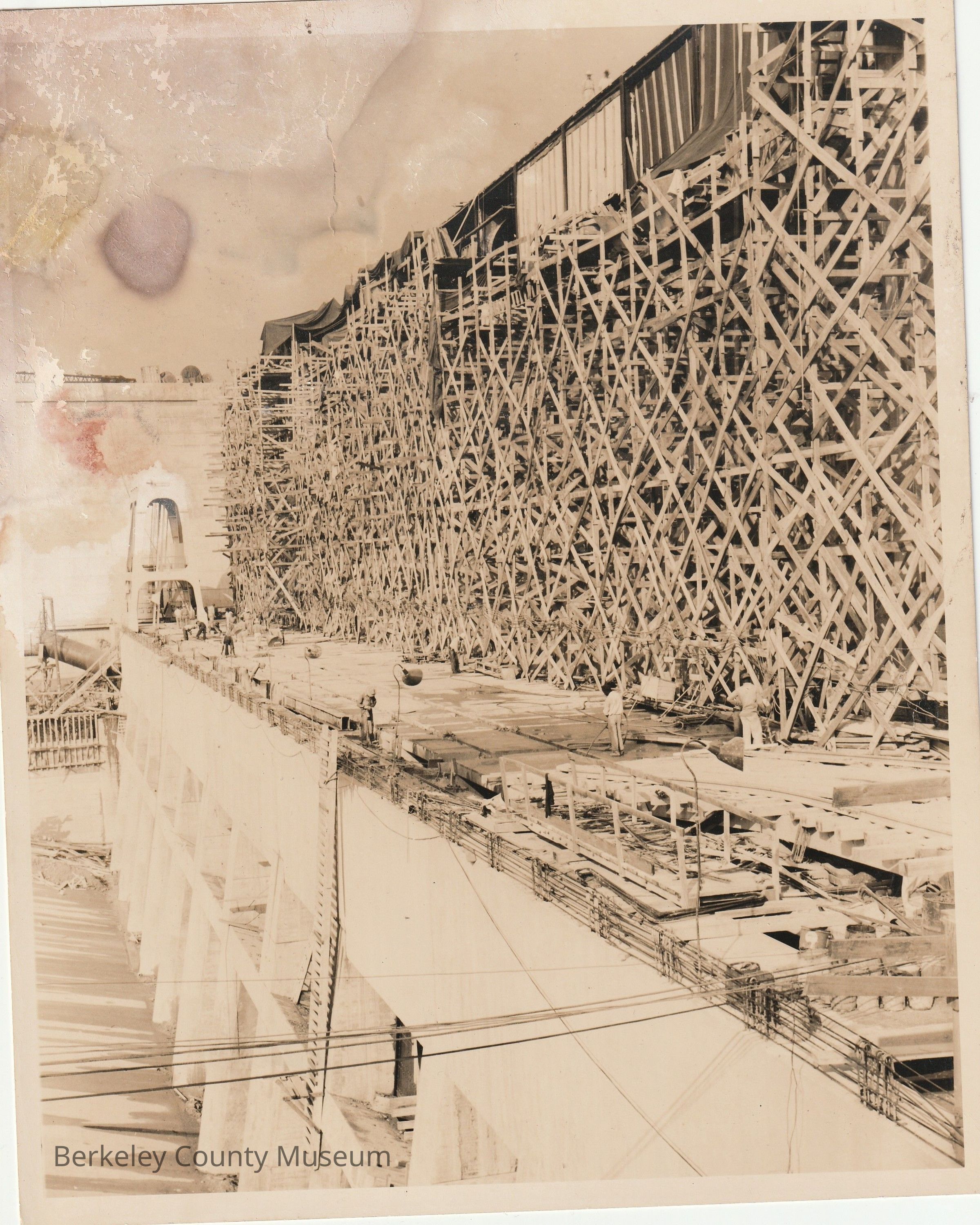 Caption on back reads: after [illegible] with scaffolding for completing super structureAcquisition