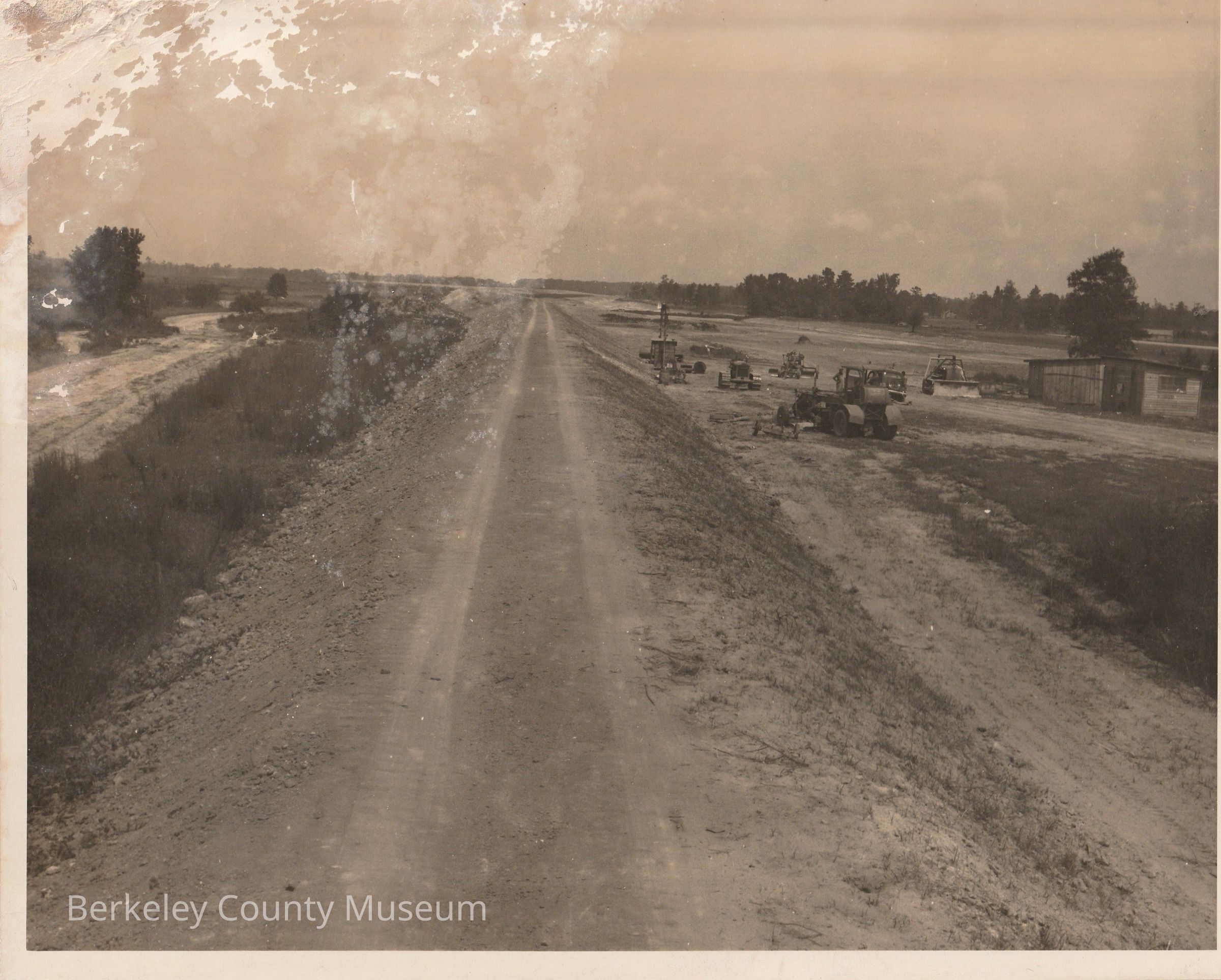 Caption on back reads: extension of Pinopolis west dam looking east. Contract #6 - Sammons Robinson sub contractor