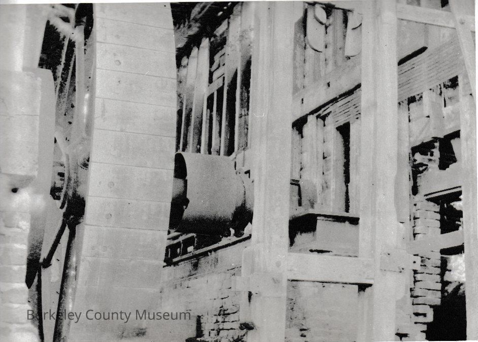 Sticker on the back says: Middleburg Rice Mill interior from private photo collection of John E. Gibbs