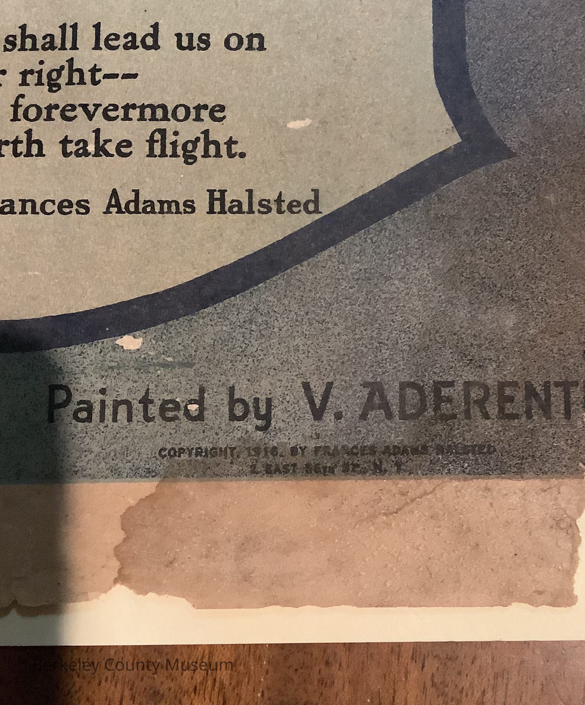 Convinced that war was inevitable, Frances Adams Halsted wrote a poem, Columbia Calls, in 1916. After America entered World War I on April 6, 1917, Halsted donated her poem and accompanying image design to the U.S. War Department. Three months later, the New York Times announced plans to print 500,000 copies as a poster; over one million copies were eventually printed.Made/Created