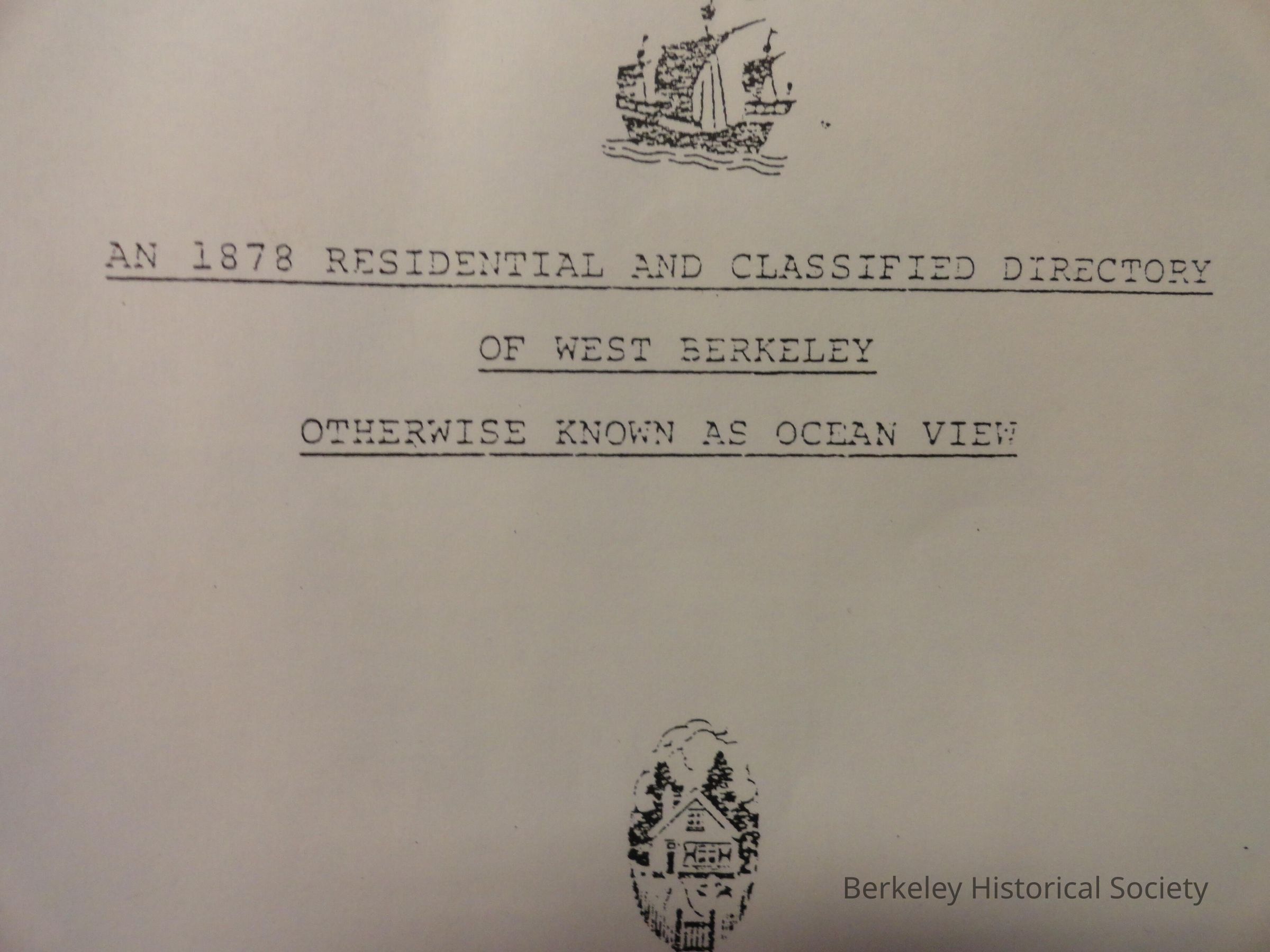 1878 Residential and Classified Directory of West Berkeley Otherwise Known as Ocean View