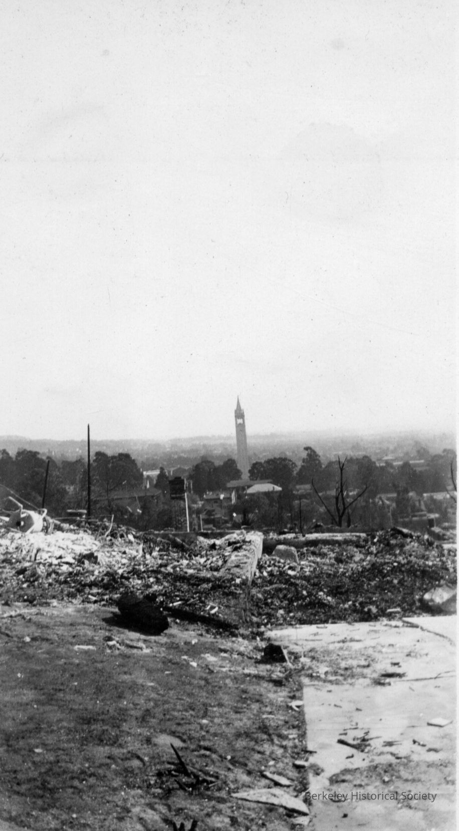 View to south from unidentified location of burned property to Campanile.