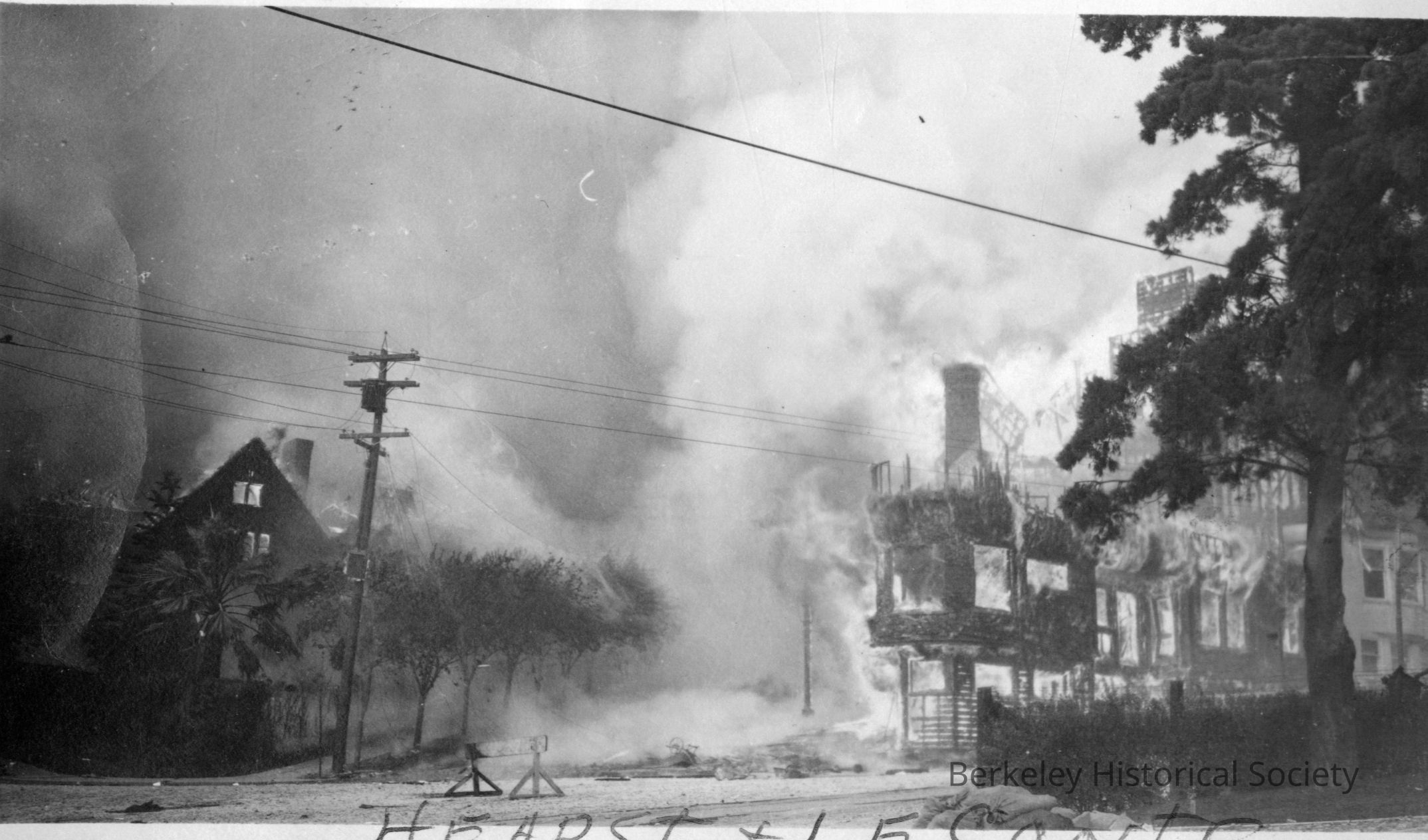 Building burning at Hearst and Le Conte. Caption in photo.