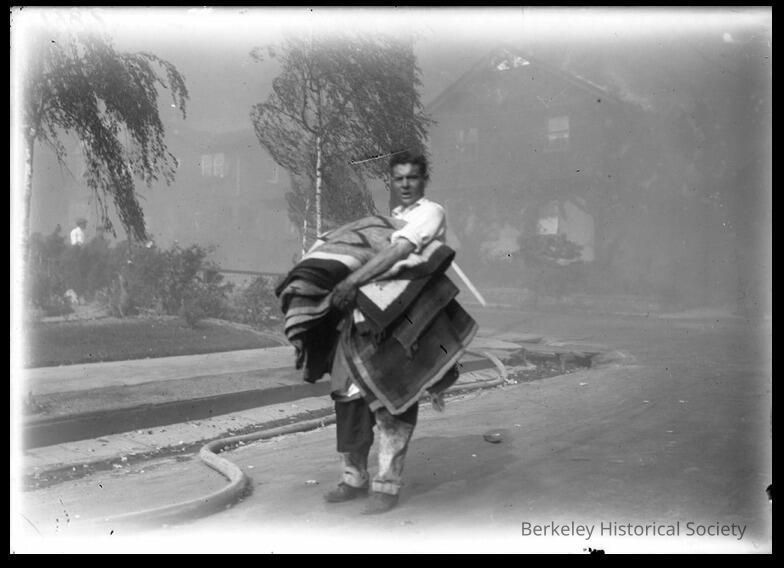 Fleeing the fire, carrying possessions.
